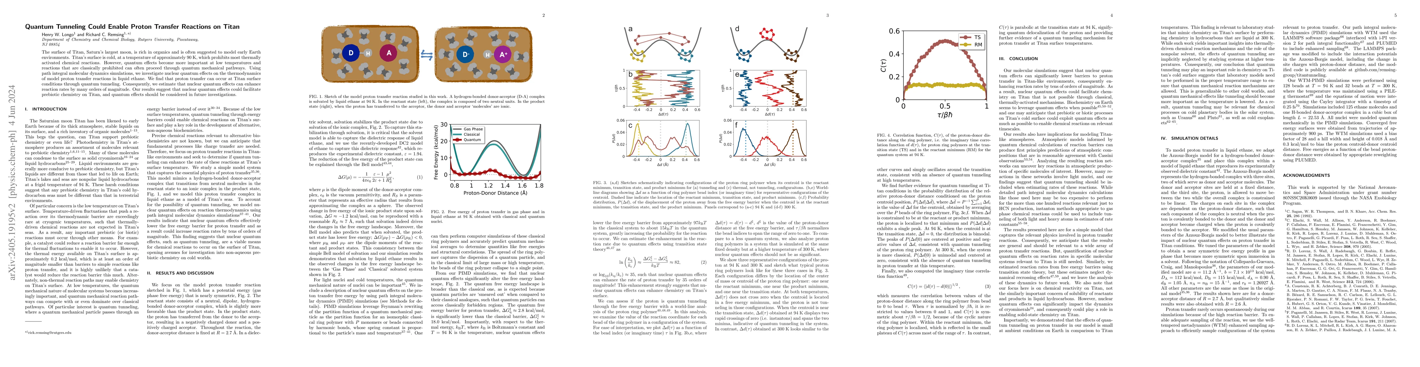 Research demonstrates that quantum tunneling enables proton transfer reactions on Titan's cold surface, potentially driving prebiotic chemistry. Simulations reveal that nuclear quantum effects can significantly enhance reaction rates, suggesting they should be considered in future studies.
