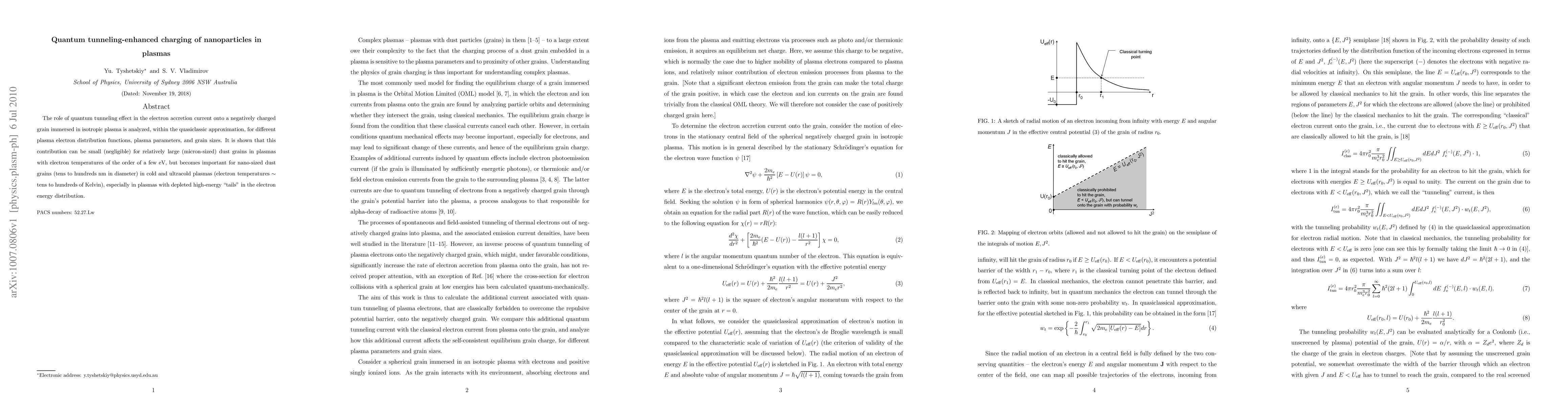 The role of quantum tunneling effect in the electron accretion current onto a negatively charged grain immersed in isotropic plasma is analyzed, within the quasiclassic approximation, for different plasma electron distribution functions, plasma parameters, and grain sizes. It is shown that this contribution can be small (negligible) for relatively large (micron-sized) dust grains in plasmas with electron temperatures of the order of a few eV, but becomes important for nano-sized dust grains (tens to hundreds nm in diameter) in cold and ultracold plasmas (electron temperatures ~ tens to hundreds of Kelvin), especially in plasmas with depleted high-energy "tails" in the electron energy distribution.