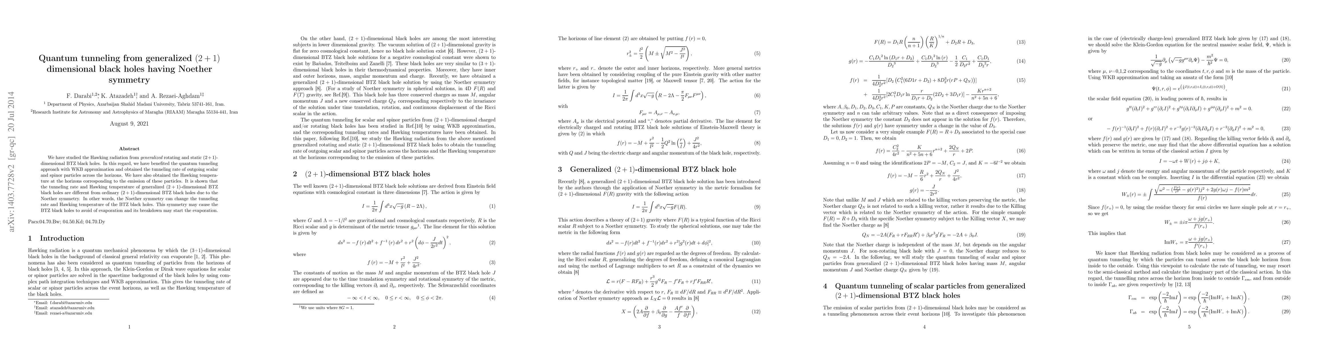 This research investigates quantum tunneling from generalized $(2+1)$-dimensional BTZ black holes using the WKB approximation, revealing distinct tunneling rates and Hawking temperatures influenced by Noether symmetry, potentially affecting black hole evaporation dynamics.