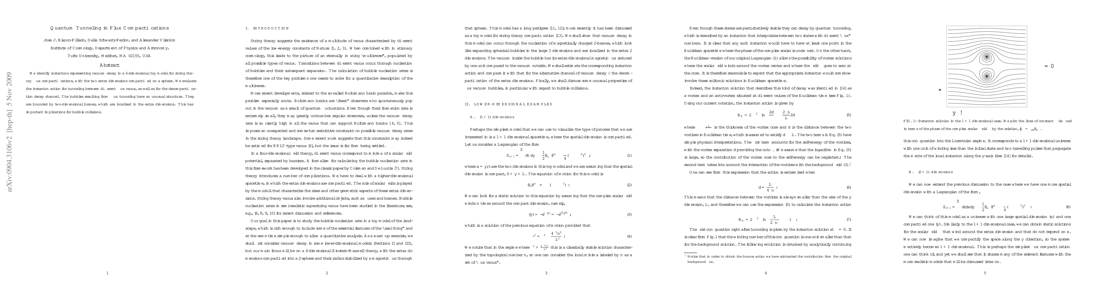 This paper identifies instantons for vacuum decay in a 6-dimensional string theory model with compactified extra dimensions, evaluating the instanton action for tunneling between flux vacua and decompactification. The resulting bubbles from flux tunneling are bounded by two-dimensional branes, impacting bubble collision dynamics.
