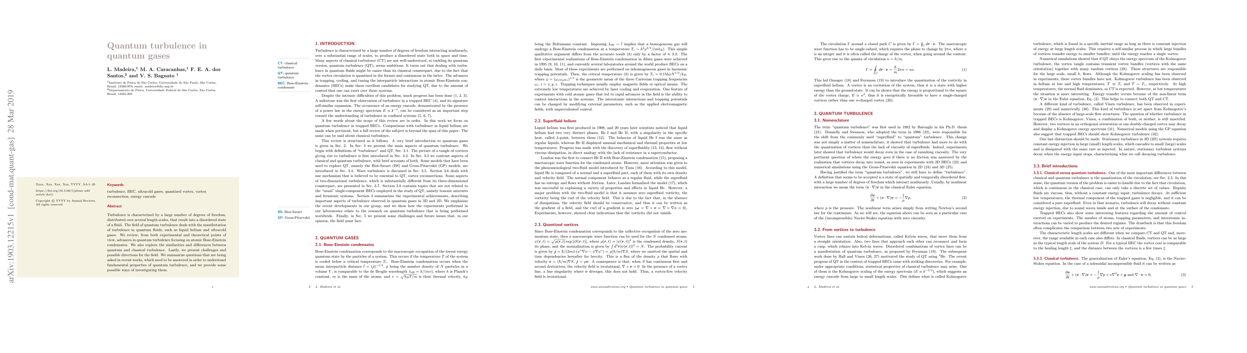 Turbulence is characterized by a large number of degrees of freedom, distributed over several length scales, that result into a disordered state of a fluid. The field of quantum turbulence deals with the manifestation of turbulence in quantum fluids, such as liquid helium and ultracold gases. We review, from both experimental and theoretical points of view, advances in quantum turbulence focusing on atomic Bose-Einstein condensates. We also explore the similarities and differences between quantum and classical turbulence. Lastly, we present challenges and possible directions for the field. We summarize questions that are being asked in recent works, which need to be answered in order to understand fundamental properties of quantum turbulence, and we provide some possible ways of investigating them.