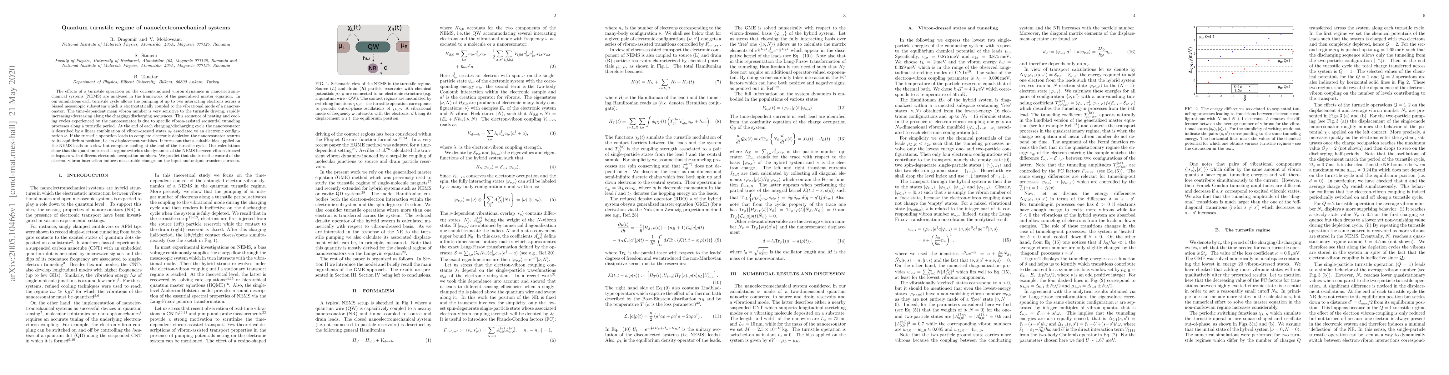 Researchers study how a nanoscale device called a turnstile affects vibrations in tiny mechanical systems, finding that the device can heat or cool them up depending on its operation, leading to measurable changes in current output.