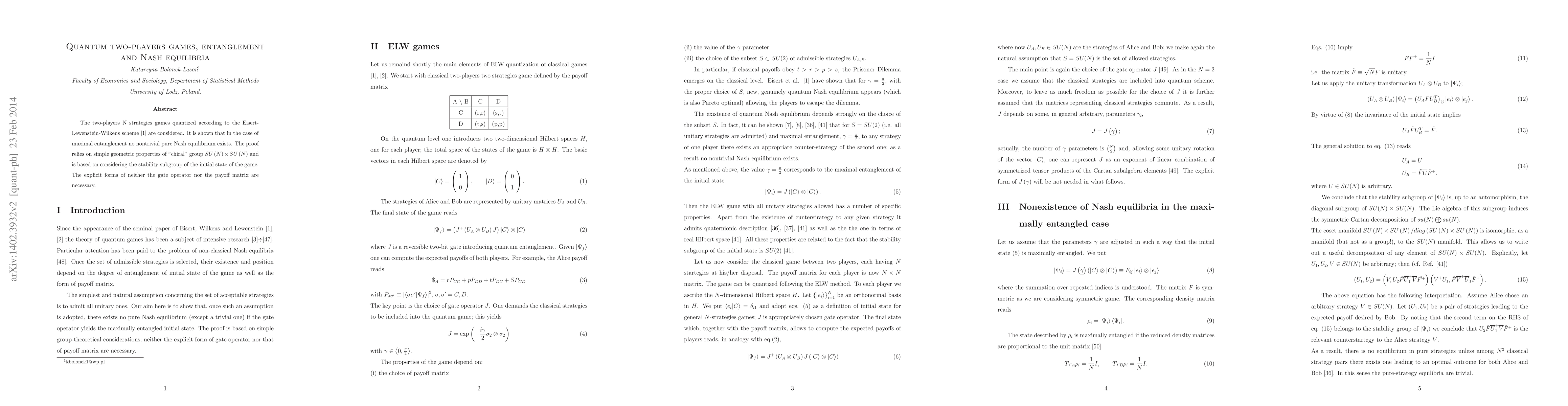 This paper quantizes two-player N-strategy games using the Eisert-Lewenstein-Wilkens scheme and demonstrates that maximal entanglement precludes nontrivial pure Nash equilibria, relying on geometric properties of the chiral group $SU(N)\times SU(N)$ and the stability subgroup of the game's initial state.