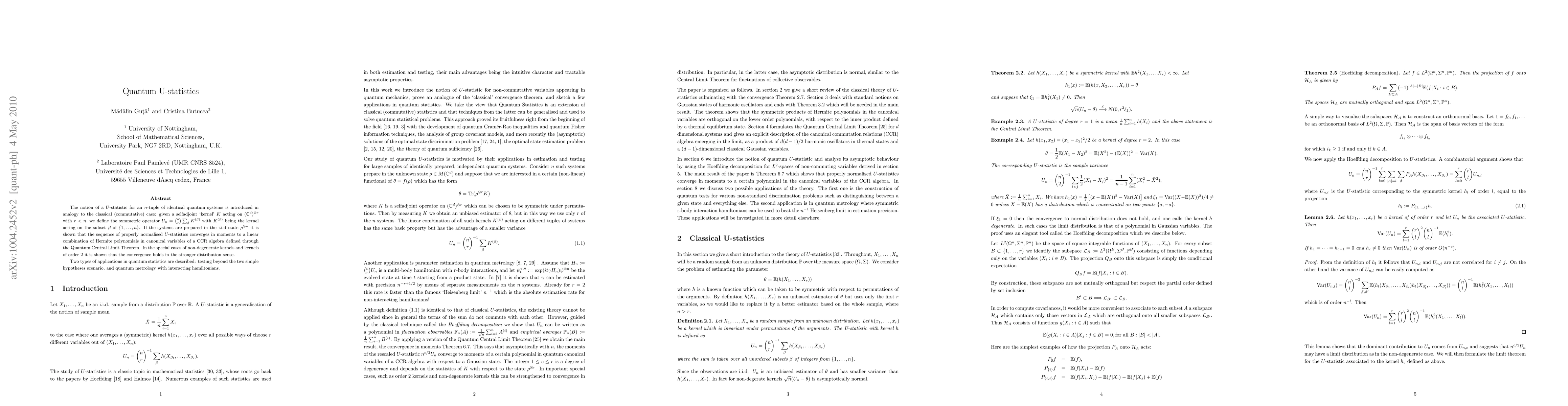 This paper introduces a $U$-statistic for an $n$-tuple of identical quantum systems, which converges to a linear combination of Hermite polynomials in canonical variables under certain conditions.