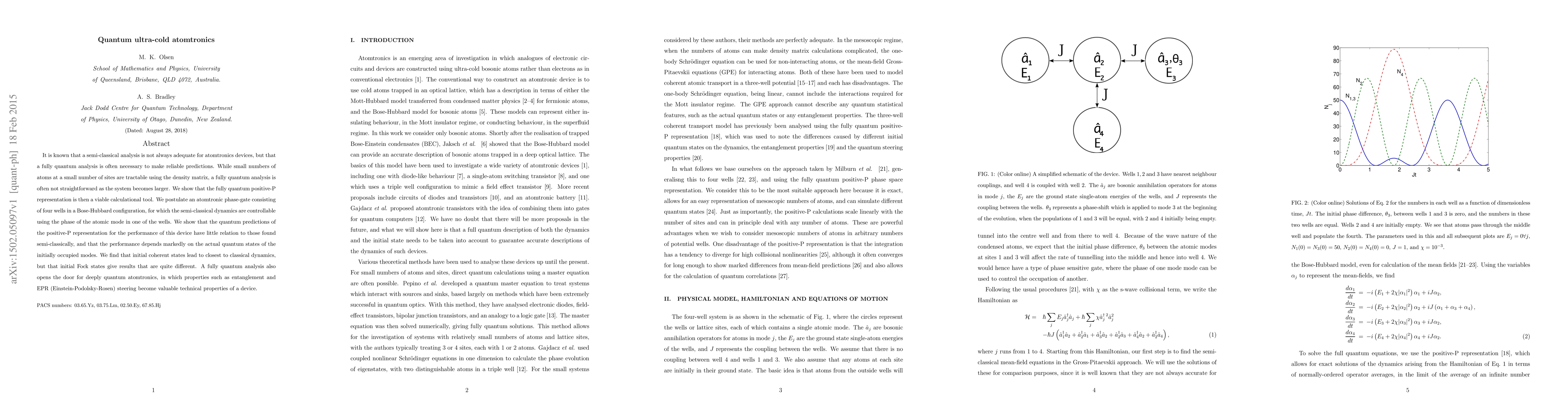 It is known that a semi-classical analysis is not always adequate for atomtronics devices, but that a fully quantum analysis is often necessary to make reliable predictions. While small numbers of atoms at a small number of sites are tractable using the density matrix, a fully quantum analysis is often not straightforward as the system becomes larger. We show that the fully quantum positive-P representation is then a viable calculational tool. We postulate an atomtronic phase-gate consisting of four wells in a Bose-Hubbard configuration, for which the semi-classical dynamics are controllable using the phase of the atomic mode in one of the wells. We show that the quantum predictions of the positive-P representation for the performance of this device have little relation to those found semi-classically, and that the performance depends markedly on the actual quantum states of the initially occupied modes. We find that initial coherent states lead to closest to classical dynamics, but that initial Fock states give results that are quite different. A fully quantum analysis also opens the door for deeply quantum atomtronics, in which properties such as entanglement and EPR (Einstein-Podolsky-Rosen) steering become valuable technical properties of a device.