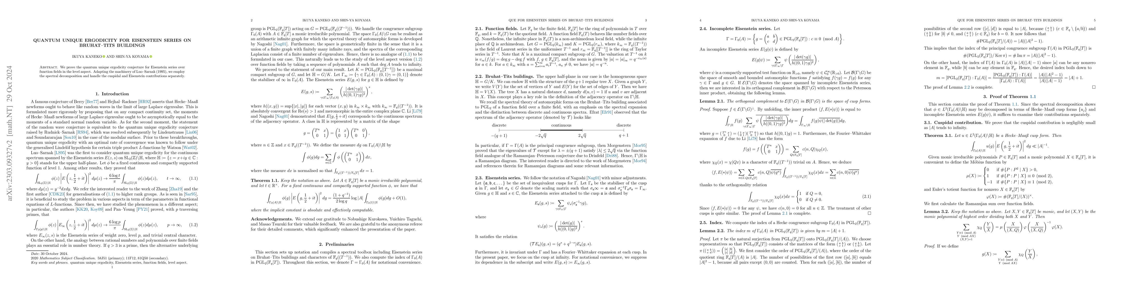 Summary: The paper proves the quantum unique ergodicity conjecture for Eisenstein series over function fields, addressing both cuspidal and Eisenstein contributions separately using spectral decomposition methods, following Luo-Sarnak's framework from 1995.