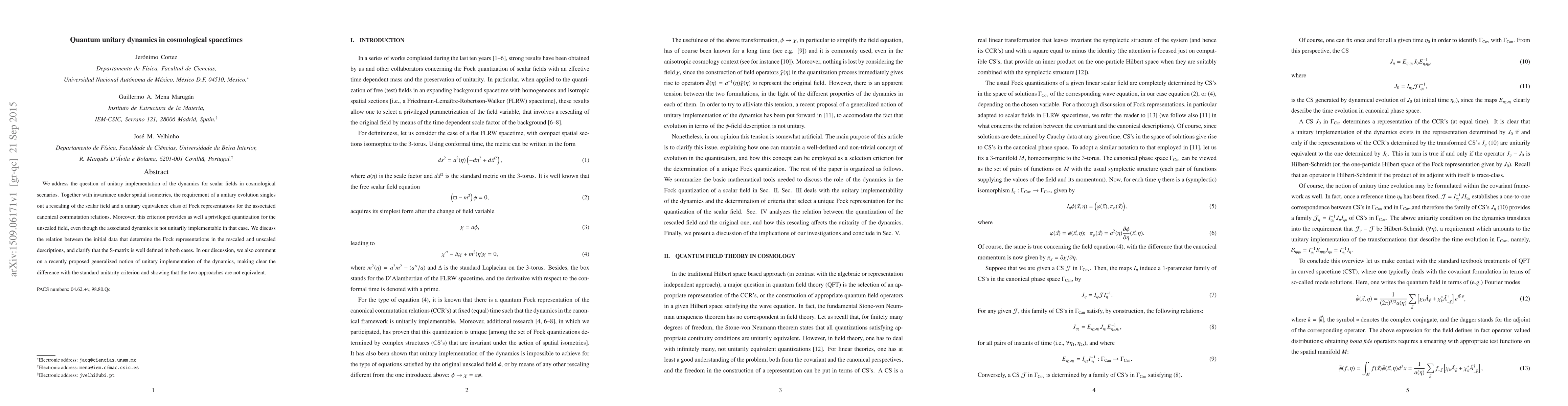 We address the question of unitary implementation of the dynamics for scalar fields in cosmological scenarios. Together with invariance under spatial isometries, the requirement of a unitary evolution singles out a rescaling of the scalar field and a unitary equivalence class of Fock representations for the associated canonical commutation relations. Moreover, this criterion provides as well a privileged quantization for the unscaled field, even though the associated dynamics is not unitarily implementable in that case. We discuss the relation between the initial data that determine the Fock representations in the rescaled and unscaled descriptions, and clarify that the S-matrix is well defined in both cases. In our discussion, we also comment on a recently proposed generalized notion of unitary implementation of the dynamics, making clear the difference with the standard unitarity criterion and showing that the two approaches are not equivalent.