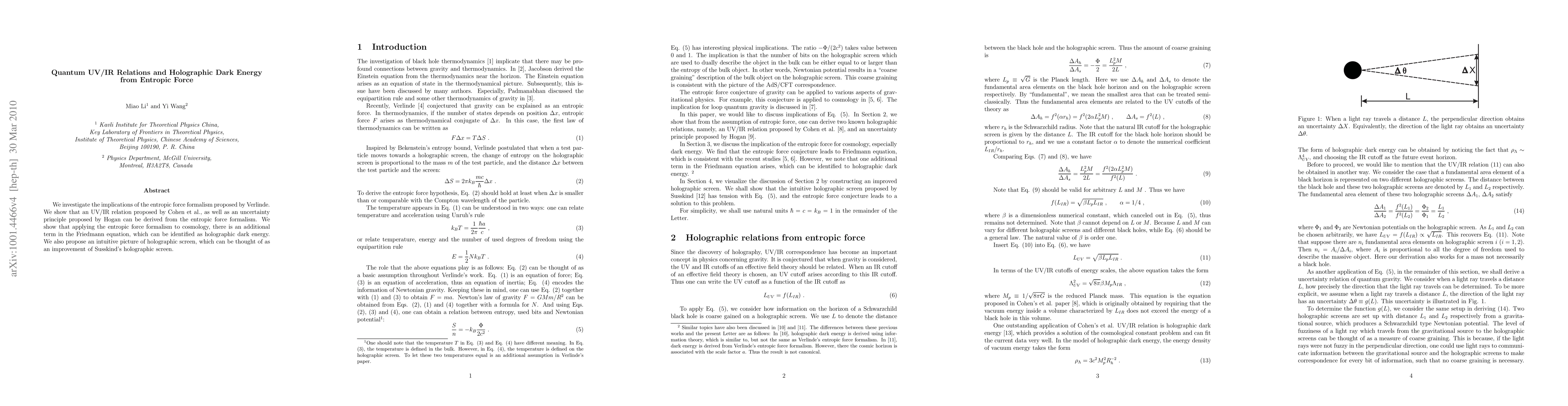 This paper explores the entropic force formalism by Verlinde, deriving UV/IR relations and an uncertainty principle from it. It introduces an additional term in the Friedmann equation, identified as holographic dark energy, and proposes an enhanced holographic screen model.
