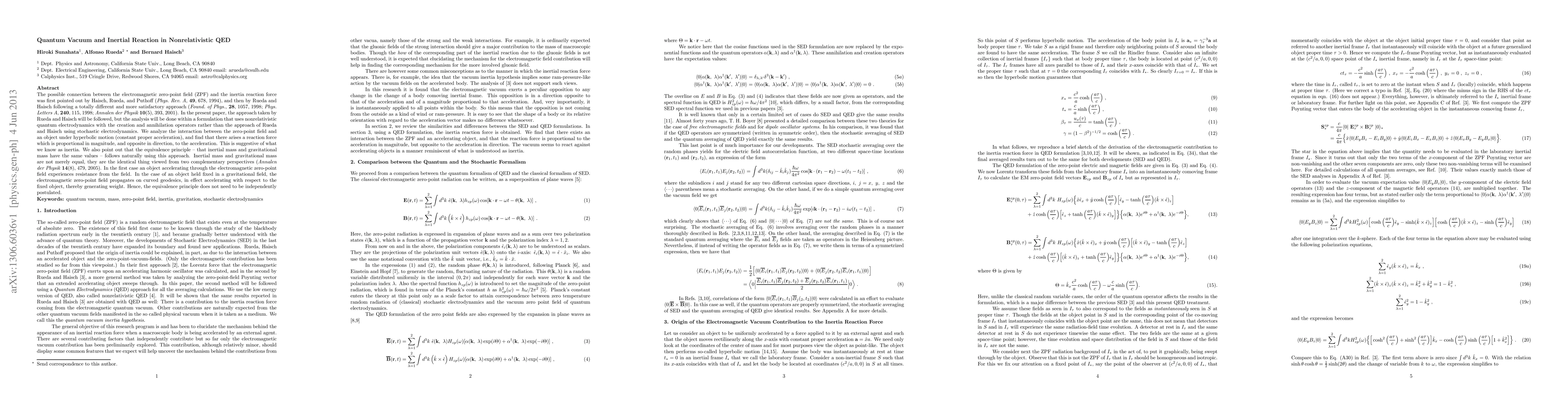 The possible connection between the electromagnetic zero-point field (ZPF) and the inertia reaction force was first pointed out by Haisch, Rueda, and Puthoff (Phys. Rev. A, 49, 678, 1994), and then by Rueda and Haisch following a totally different and more satisfactory approach (Found. Phys., 28, 1057, 1998; Phys. Letters A, 240, 115, 1998; Annalen der Physik, 10 (5), 393, 2001). In the present paper, the approach taken by Rueda and Haisch will be followed, but the analysis will be done within a formulation that uses nonrelativistic quantum electrodynamics with the creation and annihilation operators rather than the approach of Rueda and Haisch using stochastic electrodynamics. We analyze the interaction between the zero-point field and an object under hyperbolic motion (constant proper acceleration), and find that there arises a reaction force which is proportional in magnitude, and opposite in direction, to the acceleration. This is suggestive of what we know as inertia. We also point out that the equivalence principle -- that inertial mass and gravitational mass have the same values -- follows naturally using this approach. Inertial mass and gravitational mass are not merely equal, they are the identical thing viewed from two complementary perspectives (Annalen der Physik, 14 (8), 479, 2005). In the first case an object accelerating through the electromagnetic zero-point field experiences resistance from the field. In the case of an object held fixed in a gravitational field, the electromagnetic zero-point field propagates on curved geodesics, in effect accelerating with respect to the fixed object, thereby generating weight. Hence, the equivalence principle does not need to be independently postulated.