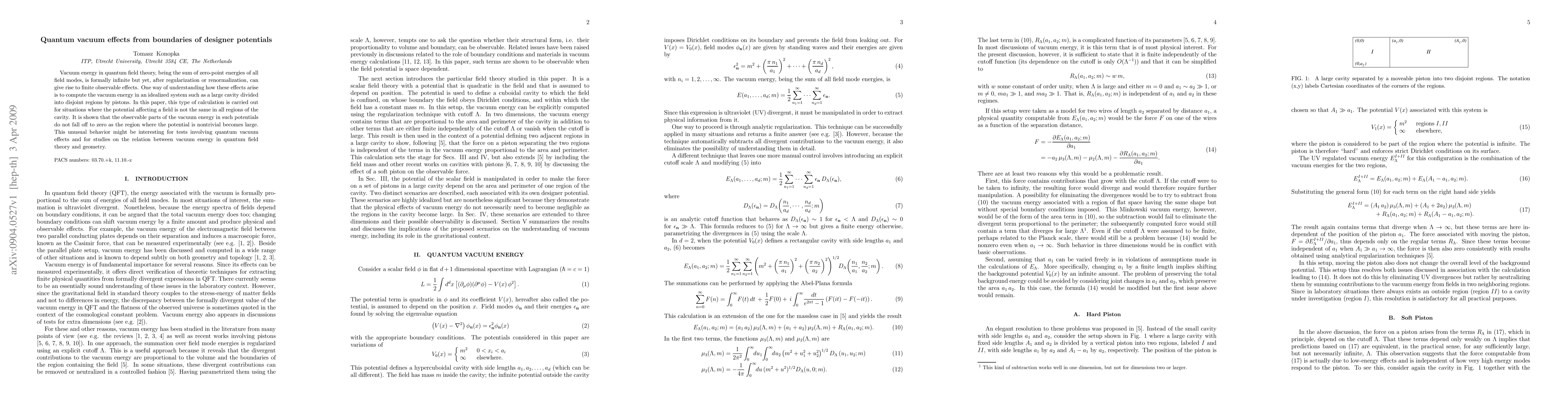 Vacuum energy in quantum field theory, being the sum of zero-point energies of all field modes, is formally infinite but yet, after regularization or renormalization, can give rise to finite observable effects. One way of understanding how these effects arise is to compute the vacuum energy in an idealized system such as a large cavity divided into disjoint regions by pistons. In this paper, this type of calculation is carried out for situations where the potential affecting a field is not the same in all regions of the cavity. It is shown that the observable parts of the vacuum energy in such potentials do not fall off to zero as the region where the potential is nontrivial becomes large. This unusual behavior might be interesting for tests involving quantum vacuum effects and for studies on the relation between vacuum energy in quantum field theory and geometry.
