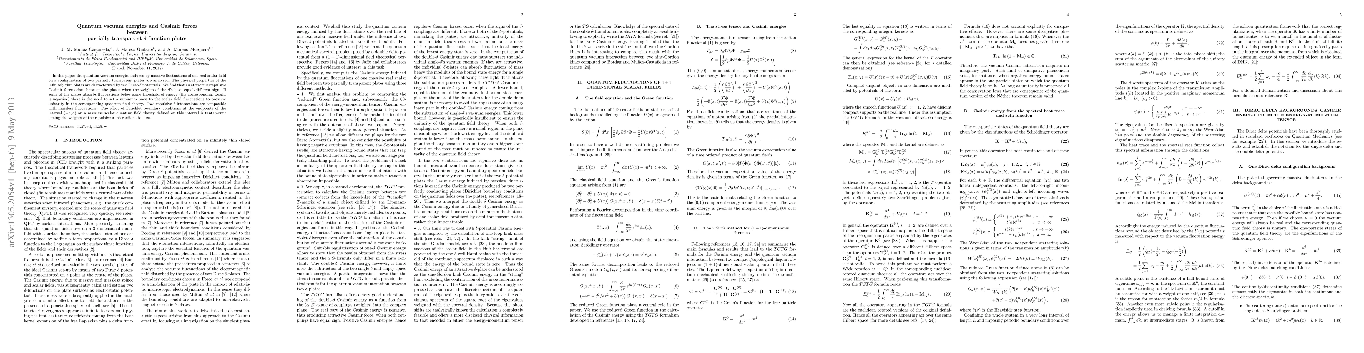 This paper analyzes quantum vacuum energies and Casimir forces between two partially transparent $\delta$-function plates, finding that equal/different sign weights of the $\delta$'s result in attractive/repulsive forces. It also discusses the necessity of a minimum mass for scalar field fluctuations to maintain unitarity when plates absorb fluctuations below a certain energy threshold.