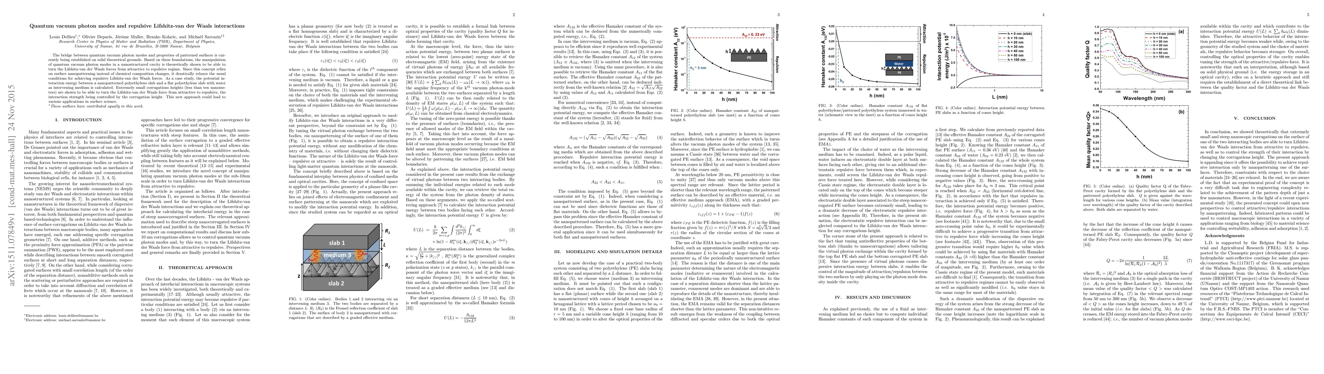 This paper demonstrates how manipulating quantum vacuum photon modes within a nanostructured cavity can convert Lifshitz-van der Waals forces from attractive to repulsive, achieved through surface nanopatterning rather than chemical changes. Calculations show that tiny surface corrugations can induce repulsive forces, potentially revolutionizing surface science applications.