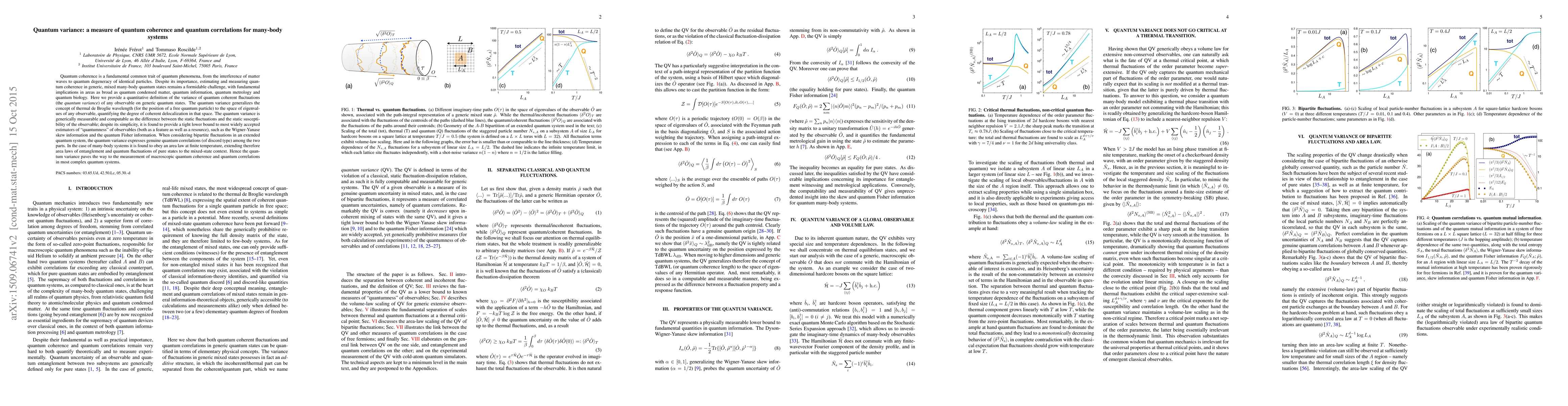 This paper introduces the concept of quantum variance as a measure of quantum coherence and correlations in many-body systems, providing a quantitative definition that generalizes thermal de Broglie wavelength. It establishes the quantum variance as a tight lower bound for various quantumness estimators and demonstrates its applicability to measuring macroscopic quantum coherence and genuine quantum correlations in complex quantum systems.
