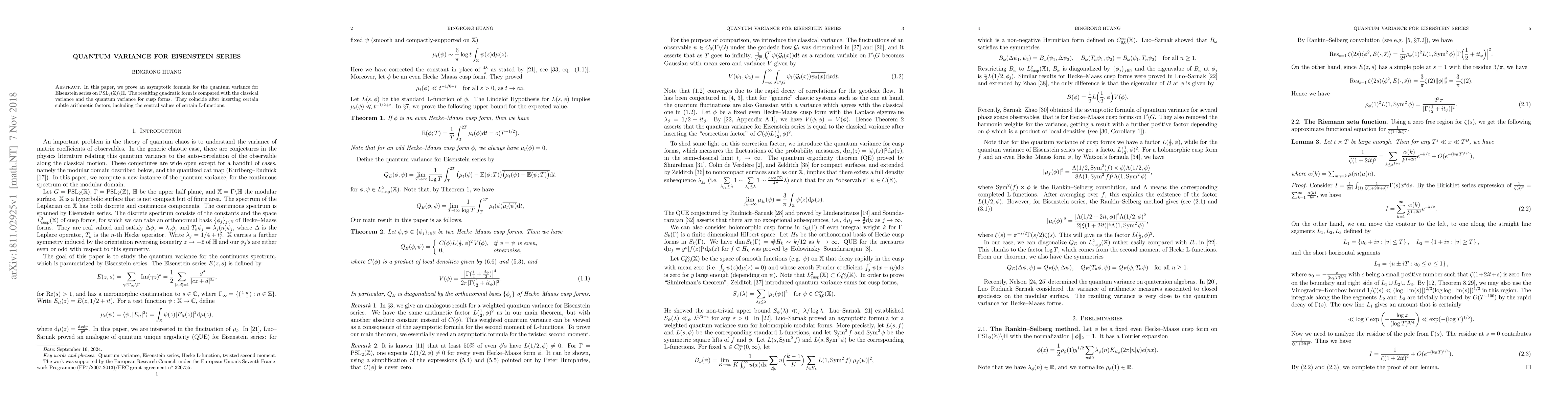 In this paper, we prove an asymptotic formula for the quantum variance for Eisenstein series on $\mathrm{PSL}_2(\mathbb{Z})\backslash \mathbb{H}$. The resulting quadratic form is compared with the classical variance and the quantum variance for cusp forms. They coincide after inserting certain subtle arithmetic factors, including the central values of certain L-functions.