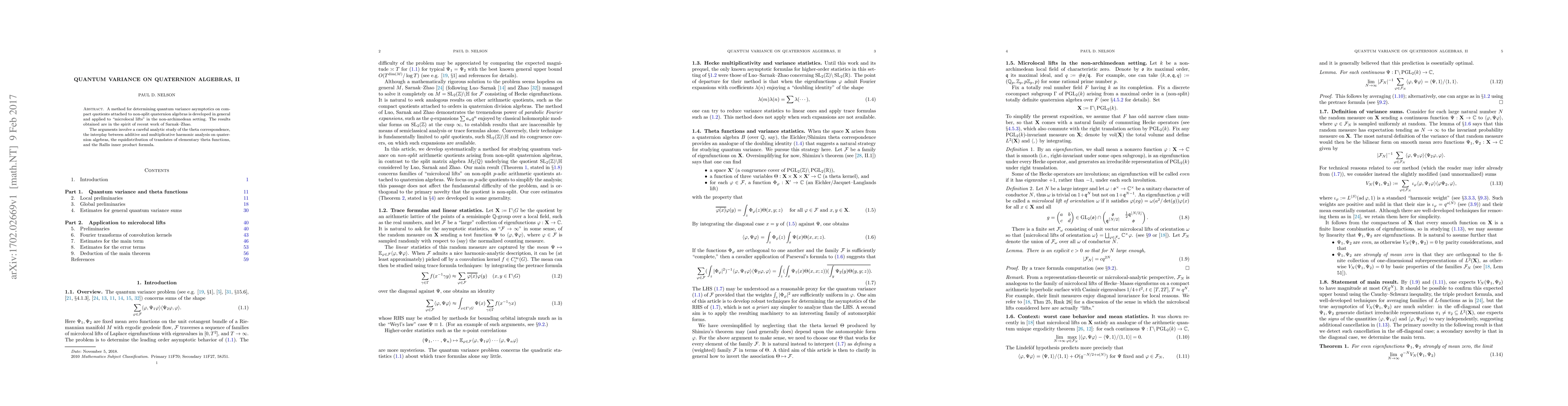 A method for determining quantum variance asymptotics on compact quotients attached to non-split quaternion algebras is developed in general and applied to "microlocal lifts" in the non-archimedean setting. The results obtained are in the spirit of recent work of Sarnak--Zhao. The arguments involve a careful analytic study of the theta correspondence, the interplay between additive and multiplicative harmonic analysis on quaternion algebras, the equidistribution of translates of elementary theta functions, and the Rallis inner product formula.