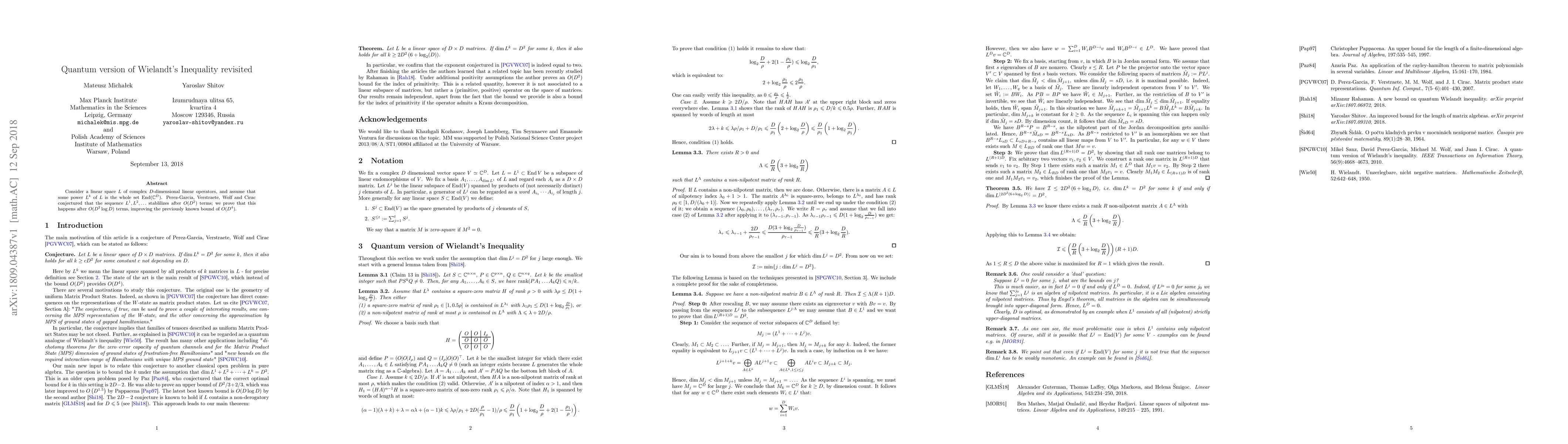 Consider a linear space L of complex D-dimensional linear operators, and assume that some power L^k of L is the whole space of DxD matrices. Perez-Garcia, Verstraete, Wolf and Cirac conjectured that the sequence L^1,L^2,... stablilizes after O(D^2) terms; we prove that this happens after O(D^2 log(D)) terms, improving the previously known bound of O(D^4).
