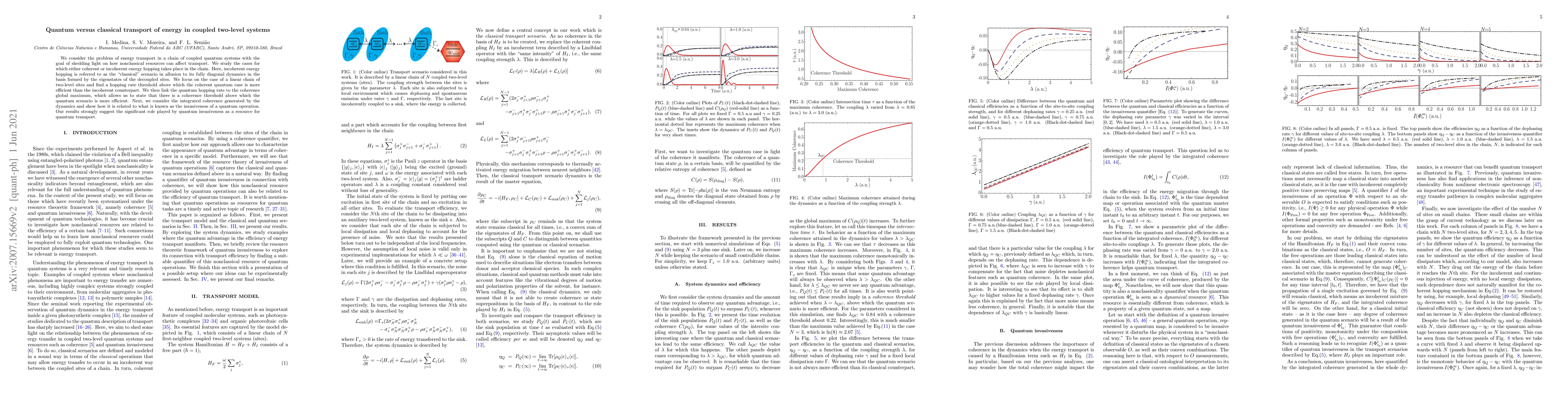 We consider the problem of energy transport in a chain of coupled quantum systems with the goal of shedding light on how nonclassical resources can affect transport. We study the cases for which either coherent or incoherent energy hopping takes place in the chain. Here, incoherent energy hopping is referred to as the "classical" scenario in allusion to its fully diagonal dynamics in the basis formed by the eigenstates of the decoupled sites. We focus on the case of a linear chain of two-level sites and find a hopping rate threshold above which the coherent quantum case is more efficient than the incoherent counterpart. We then link the quantum hopping rate to the coherence global maximum, which allows us to state that there is a coherence threshold above which the quantum scenario is more efficient. Next, we consider the integrated coherence generated by the dynamics and show how it is related to what is known as the invasiveness of a quantum operation. Our results strongly suggest the significant role played by quantum invasiveness as a resource for quantum transport.