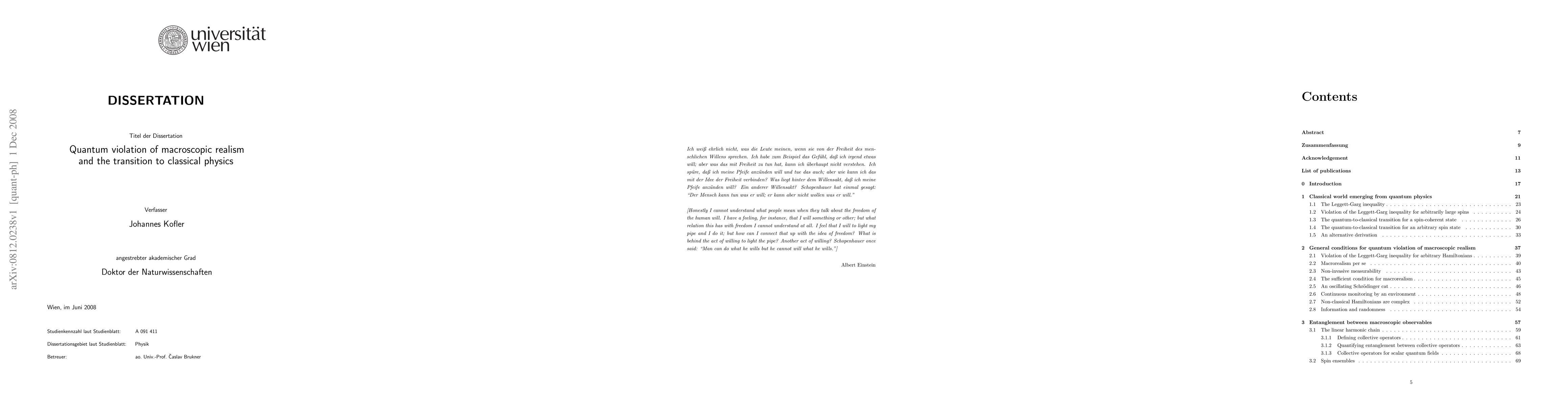 The descriptions of the quantum realm and the macroscopic classical world differ significantly not only in their mathematical formulations but also in their foundational concepts and philosophical consequences. When and how physical systems stop to behave quantum mechanically and begin to behave classically is still heavily debated in the physics community and subject to theoretical and experimental research. This dissertation puts forward an approach to the quantum-to-classical transition fully within quantum theory and conceptually different from already existing models: It neither needs to refer to the uncontrollable environment of a system (decoherence) nor to change the quantum laws itself (collapse models), but puts the stress on the limits of observability of quantum phenomena due to the imprecision of our measurement apparatuses. For a certain class of time evolutions it is this mere restriction to coarse-grained measurements which is sufficient to see the natural emergence of macroscopic realism and even the classical Newtonian laws out of the full quantum formalism. But there also exist "non-classical" Hamiltonians for which a classical spatiotemporal description of the system's time evolution remains impossible even under fuzzy measurements or decoherence. It is argued that such Hamiltonians are unlikely to be spontaneously realized in nature because of their high complexity. The last part addresses the question of the origin of quantum randomness and proposes a link with mathematical undecidability.
