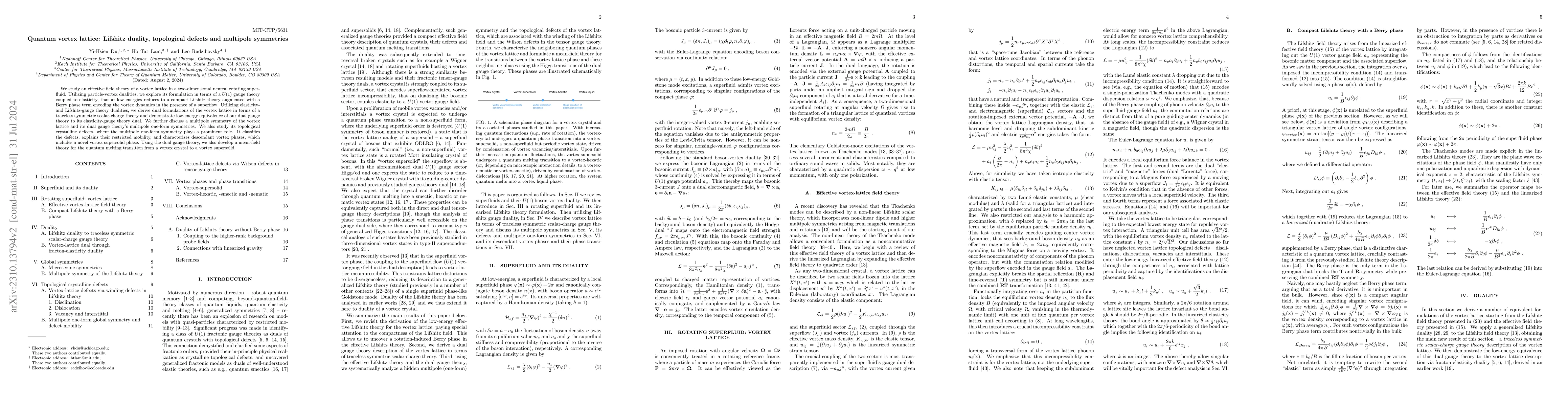 This paper explores the effective field theory of a vortex lattice in a rotating superfluid, revealing its formulation via Lifshitz duality and $U(1)$ gauge theory coupled to elasticity. It demonstrates low-energy equivalence between dual gauge and elasticity-gauge theories, and discusses the role of multipole symmetries in organizing topological crystalline defects.
