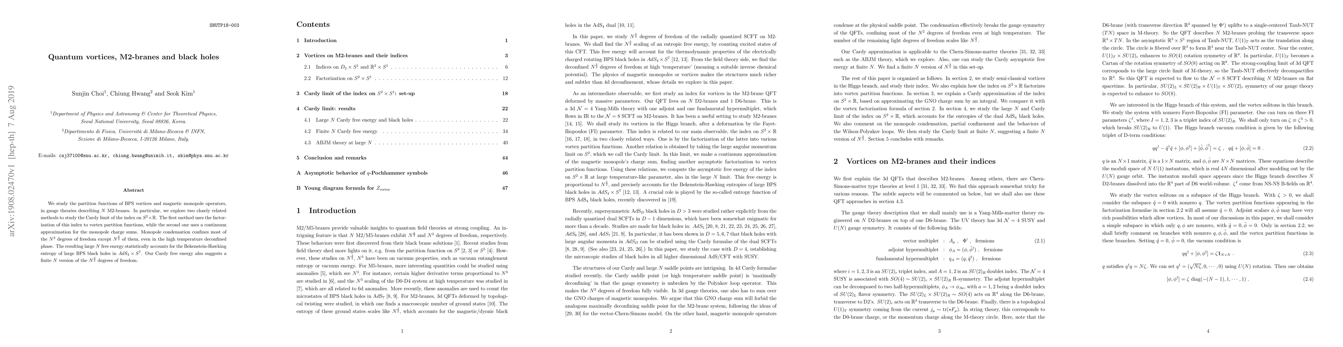 We study the partition functions of BPS vortices and magnetic monopole operators, in gauge theories describing $N$ M2-branes. In particular, we explore two closely related methods to study the Cardy limit of the index on $S^2\times\mathbb{R}$. The first method uses the factorization of this index to vortex partition functions, while the second one uses a continuum approximation for the monopole charge sums. Monopole condensation confines most of the $N^2$ degrees of freedom except $N^{\frac{3}{2}}$ of them, even in the high temperature deconfined phase. The resulting large $N$ free energy statistically accounts for the Bekenstein-Hawking entropy of large BPS black holes in $AdS_4\times S^7$. Our Cardy free energy also suggests a finite $N$ version of the $N^{\frac{3}{2}}$ degrees of freedom.