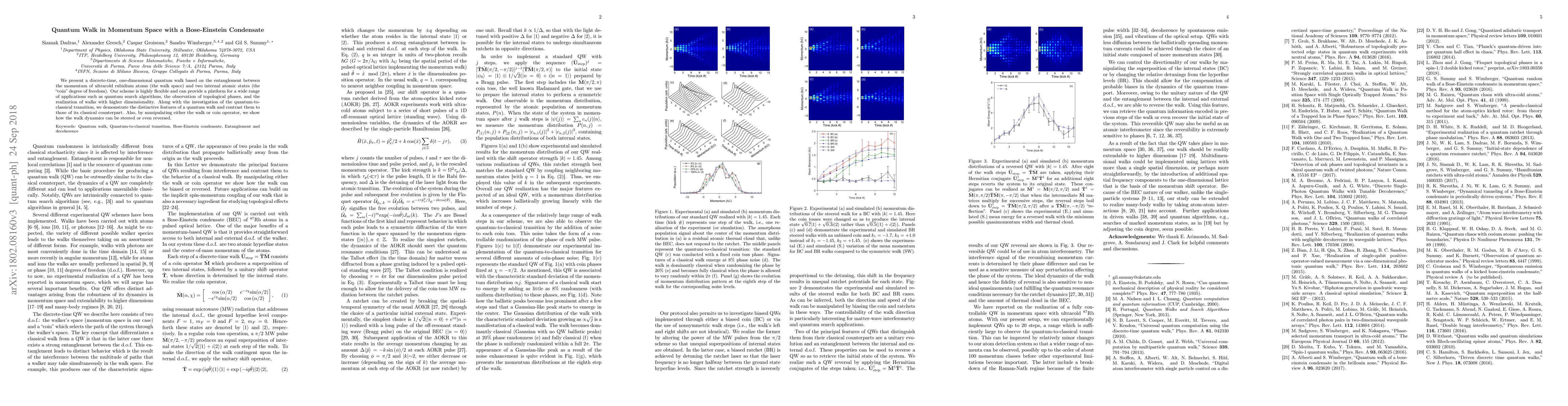 This paper explores a one-dimensional quantum walk using ultracold rubidium atoms in momentum space, demonstrating its flexibility for quantum search applications and topological phase observation. It contrasts quantum walk dynamics with classical counterparts and shows how the walk's dynamics can be manipulated and reversed.