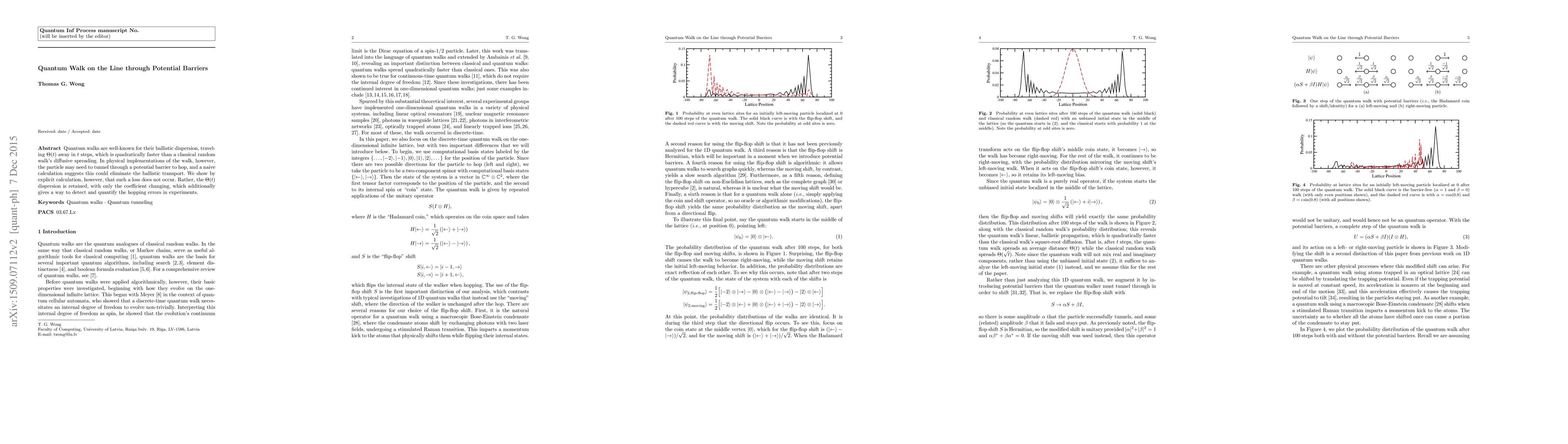 This paper demonstrates that quantum walks retain their ballistic dispersion even when particles must tunnel through potential barriers, contrary to initial expectations. The study provides a method to detect and quantify hopping errors in experimental implementations of quantum walks.