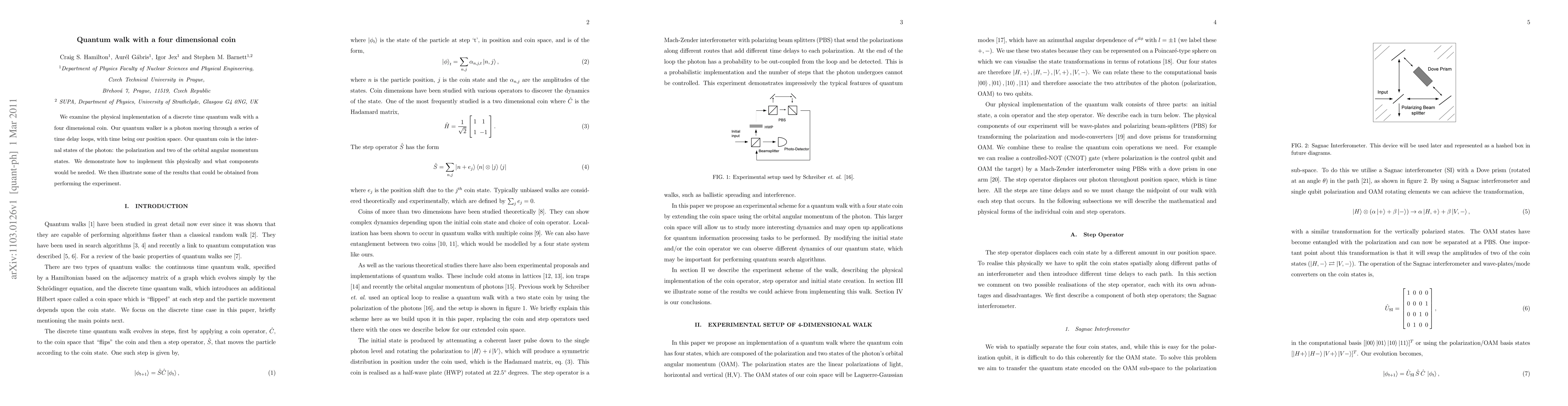 Researchers demonstrate a physical implementation of a four-dimensional quantum walk using photons with polarization and orbital angular momentum states, paving the way for experimental exploration.
