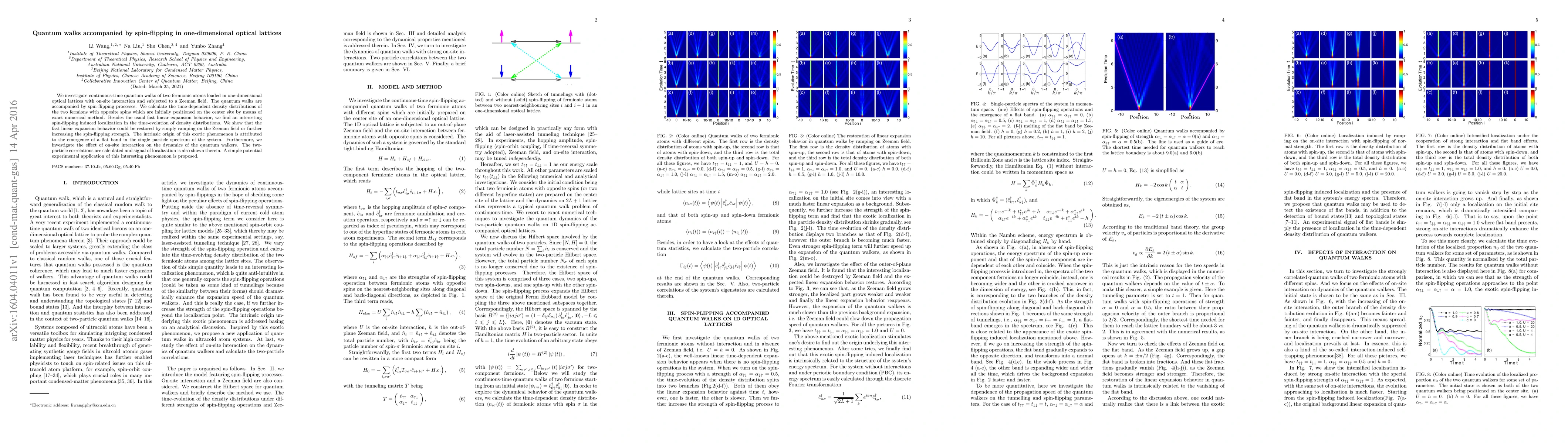 This paper studies quantum walks of two fermionic atoms in a one-dimensional optical lattice under a Zeeman field, revealing spin-flipping induced localization. The phenomenon can be reversed by adjusting the Zeeman field or spin-flipping strength, linked to the emergence of a flat band.