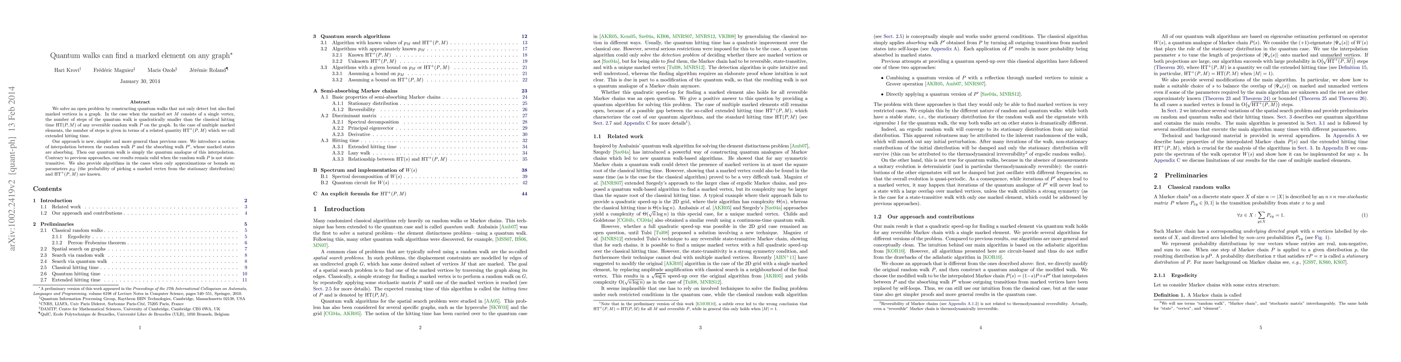Quantum walks can efficiently find marked elements on graphs, outperforming classical methods in some cases, with new, simpler, and more general approaches that work for non-state-transitive random walks.