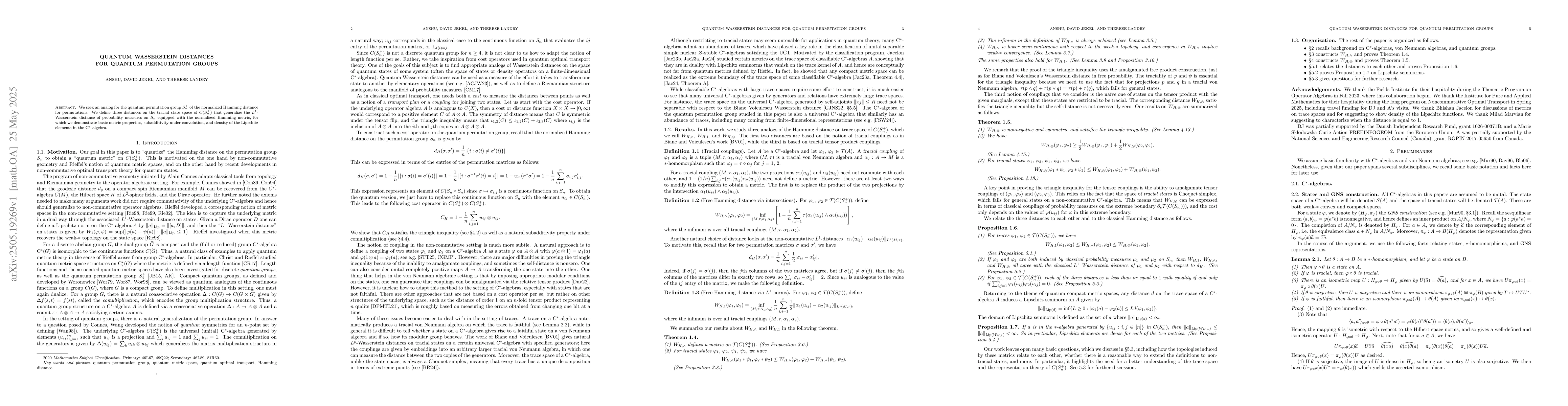 This research extends classical Wasserstein distances to the quantum setting, specifically for permutation groups, offering a novel approach to quantum information theory