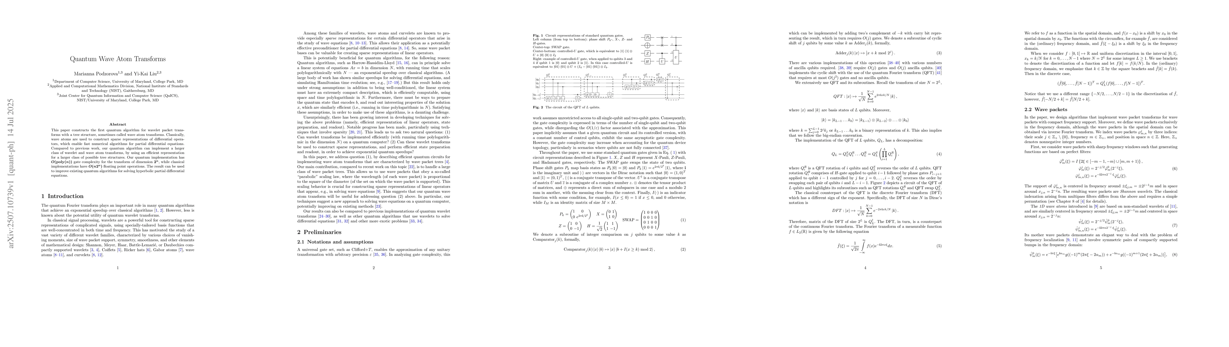 This paper constructs the first quantum algorithm for wavelet packet transforms with a tree structure, sometimes called wave atom transforms. Classically, wave atoms are used to construct sparse representations of differential operators, which enable fast numerical algorithms for partial differential equations. Compared to previous work, our quantum algorithm can implement a larger class of wavelet and wave atom transforms, by using an efficient representation for a larger class of possible tree structures. Our quantum implementation has $O(\mathrm{poly}(n))$ gate complexity for the transform of dimension $2^n$, while classical implementations have $O(n 2^n)$ floating point operations. The result can be used to improve existing quantum algorithms for solving hyperbolic partial differential equations.