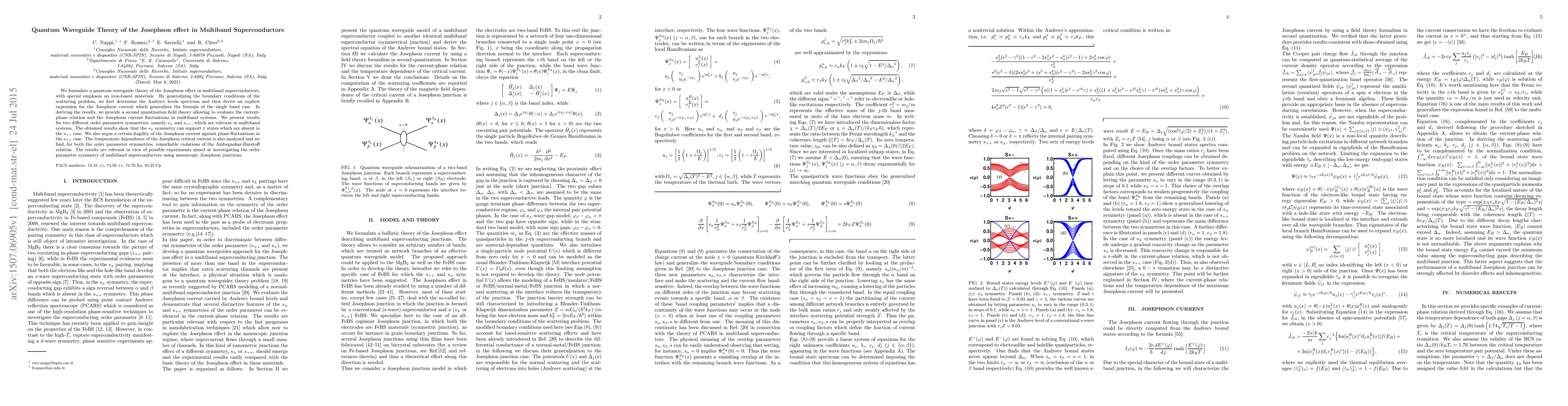 This paper develops a quantum waveguide theory for the Josephson effect in multiband superconductors, particularly focusing on iron-based materials. It generalizes the Josephson current formula and reveals that $s_\pm$ symmetry can support $\pi$ states, while $s_{++}$ is more fragile to phase fluctuations, with significant deviations from the Ambegaokar-Baratoff relation in temperature dependence.