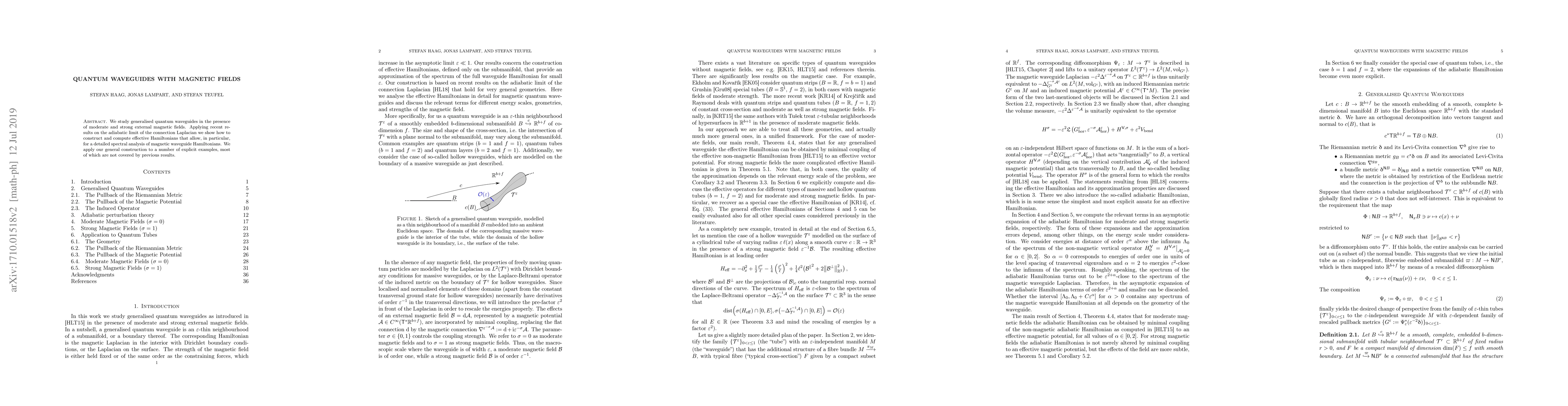 This paper explores quantum waveguides under the influence of magnetic fields, constructing effective Hamiltonians for spectral analysis. It applies these methods to various explicit examples, extending beyond previous research.