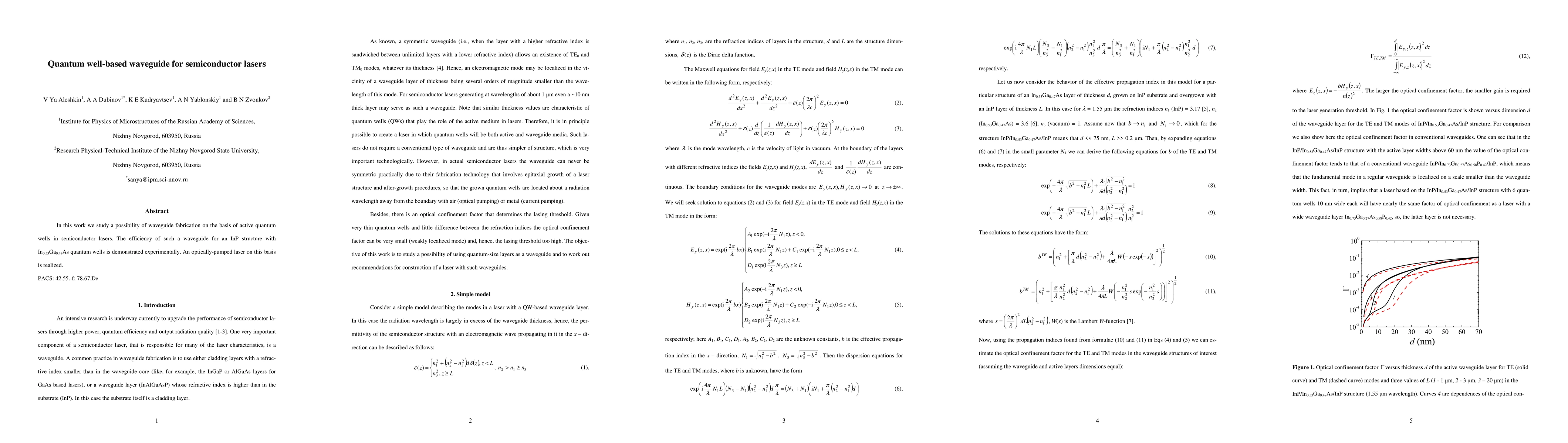 This paper explores the fabrication of waveguides using active quantum wells in semiconductor lasers, demonstrating their efficiency in an InP structure with In0.53Ga0.47As quantum wells, and successfully realizes an optically-pumped laser based on this technology.