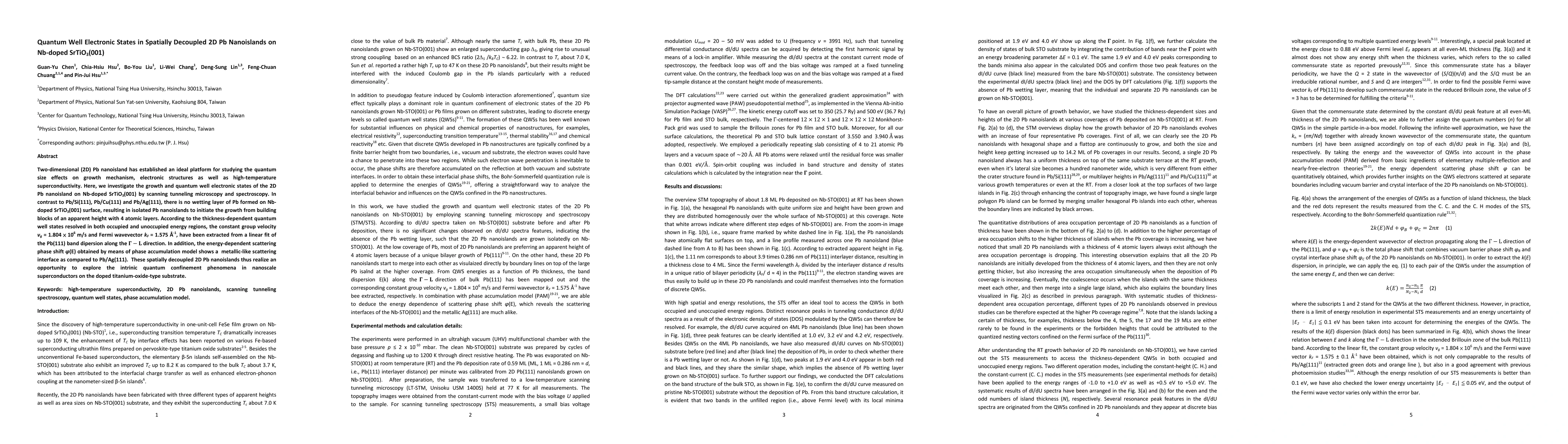 This study investigates 2D Pb nanoislands on Nb-doped SrTiO3(001) using scanning tunneling microscopy and spectroscopy, revealing isolated Pb nanoislands without a wetting layer. The research identifies quantum well electronic states and extracts a constant group velocity and Fermi wavevector, highlighting the potential for exploring intrinsic quantum confinement phenomena in nanoscale superconductors.