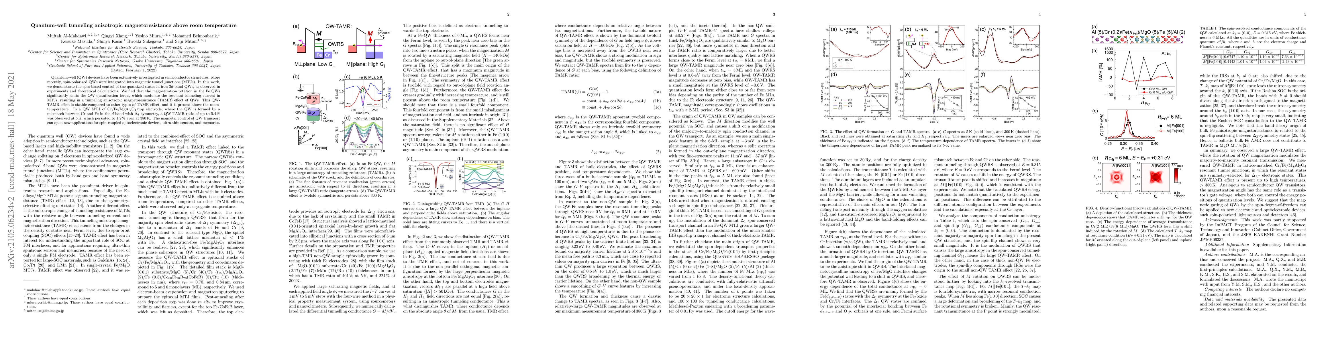 The paper presents a detailed theoretical and experimental investigation of the QW-TAMR effect in magnetic tunnel junctions with quantum wells formed by a mismatch between Cr and Fe in the d band with Δ1 symmetry.
