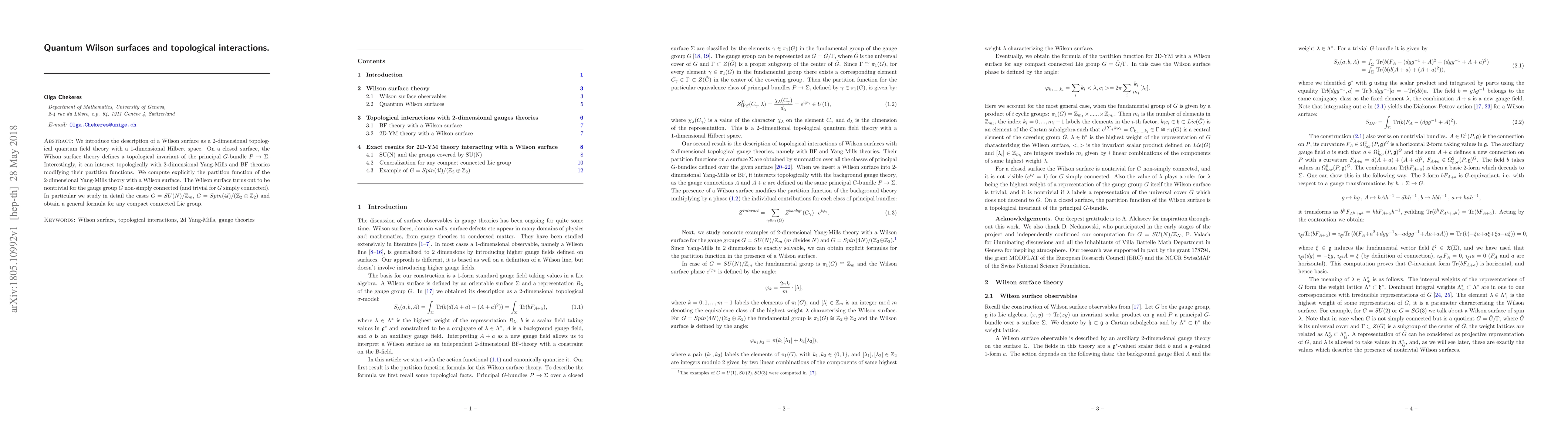 We introduce the description of a Wilson surface as a 2-dimensional topological quantum field theory with a 1-dimensional Hilbert space. On a closed surface, the Wilson surface theory defines a topological invariant of the principal $G$-bundle $P \to \Sigma$. Interestingly, it can interact topologically with 2-dimensional Yang-Mills and BF theories modifying their partition functions. We compute explicitly the partition function of the 2-dimensional Yang-Mills theory with a Wilson surface. The Wilson surface turns out to be nontrivial for the gauge group $G$ non-simply connected (and trivial for $G$ simply connected). In particular we study in detail the cases $G=SU(N)/\mathbb{Z}_m$, $G=Spin(4l)/(\mathbb{Z}_2\oplus\mathbb{Z}_2)$ and obtain a general formula for any compact connected Lie group.