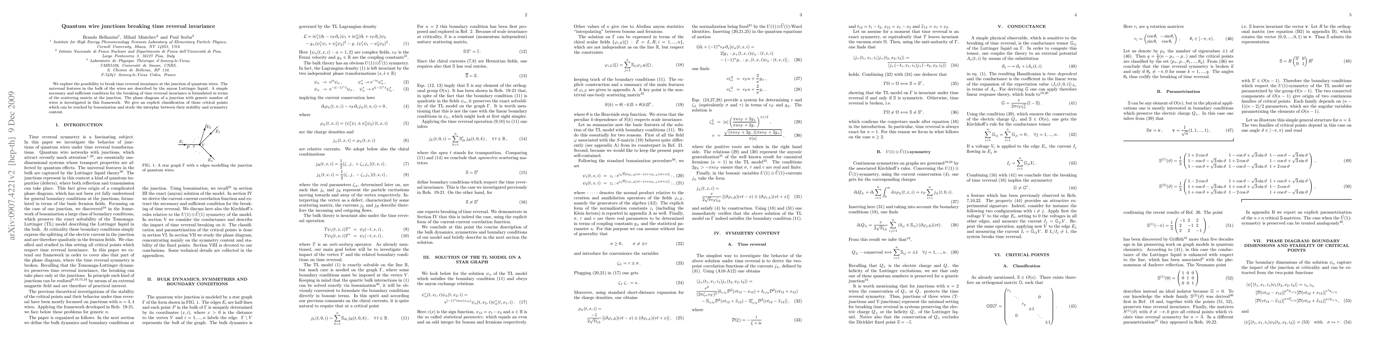 This paper investigates the breaking of time reversal invariance at quantum wire junctions using anyon Luttinger liquid theory. It formulates a condition for such breaking in terms of the scattering matrix and explores the phase diagram, classifying critical points and their stability in relation to symmetry.