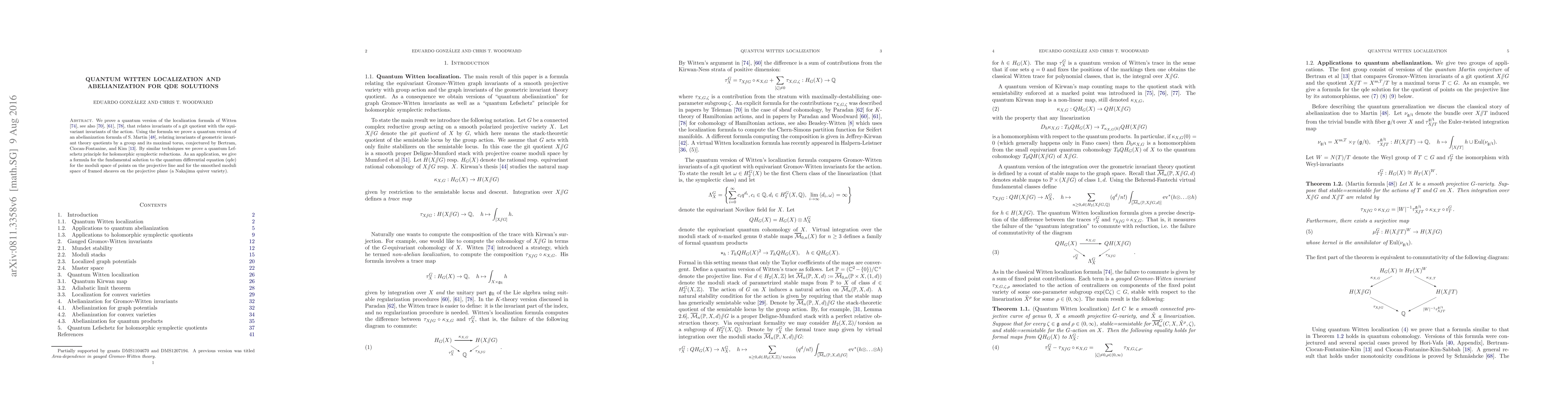 We prove a quantum version of the localization formula of Witten that relates invariants of a git quotient with the equivariant invariants of the action. Using the formula we prove a quantum version of an abelianization formula of S. Martin relating invariants of geometric invariant theory quotients by a group and its maximal torus, conjectured by Bertram, Ciocan-Fontanine, and Kim. By similar techniques we prove a quantum Lefschetz principle for holomorphic symplectic reductions. As an application, we give a formula for the fundamental solution to the quantum differential equation (qde) for the moduli space of points on the projective line and for the smoothed moduli space of framed sheaves on the projective plane (a Nakajima quiver variety).
