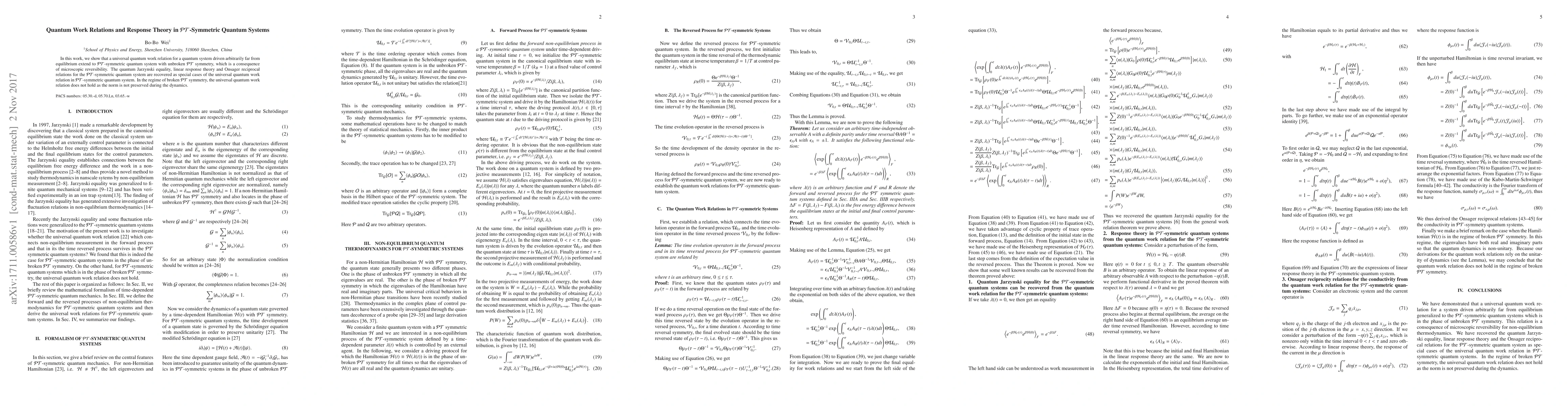 In this work, we show that a universal quantum work relation for a quantum system driven arbitrarily far from equilibrium extend to $\mathcal{PT}$-symmetric quantum system with unbroken $\mathcal{PT}$ symmetry, which is a consequence of microscopic reversibility. The quantum Jarzynski equality, linear response theory and Onsager reciprocal relations for the $\mathcal{PT}$-symmetric quantum system are recovered as special cases of the universal quantum work relation in $\mathcal{PT}$-symmetric quantum system. In the regime of broken $\mathcal{PT}$ symmetry, the universal quantum work relation does not hold as the norm is not preserved during the dynamics.
