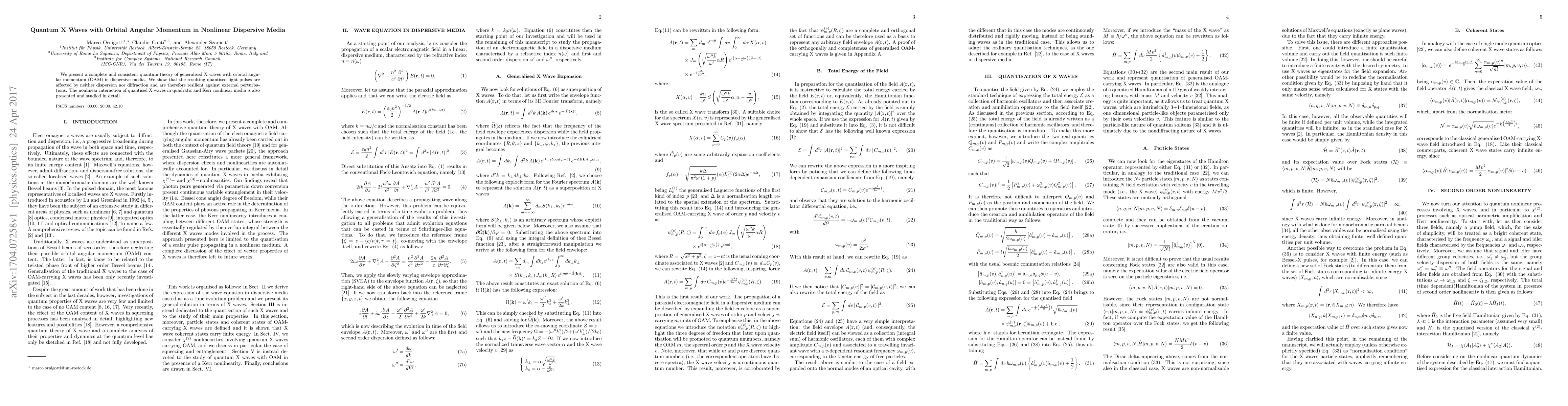 This paper develops a quantum theory of generalised X waves with orbital angular momentum in dispersive media, demonstrating their resilience against dispersion and diffraction. The study also explores the nonlinear interactions of these quantised light pulses in quadratic and Kerr nonlinear media.