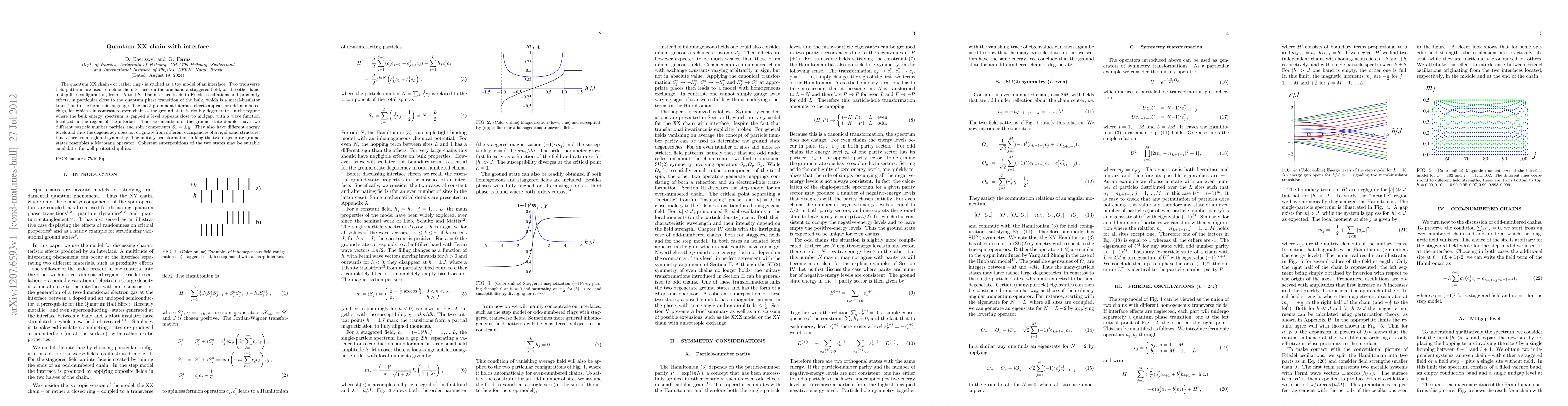The quantum XX chain - or rather ring - is studied as a toy model of an interface. Two transverse field patterns are used to define the interface, on the one hand a staggered field, on the other hand a step-like configuration, from -h to +h. The interface leads to Friedel oscillations and proximity effects, in particular close to the quantum phase transition of the bulk, which is a metal-insulator transition in the fermionic language. The most prominent interface effects appear for odd-numbered rings, for which - in contrast to even chains - the ground state is doubly degenerate. In the regime where the bulk energy spectrum is gapped a level appears close to midgap, with a wave function localized in the region of the interface. The two members of the ground state doublet have two different particle number parities and spin components S_z=+-1/2. They also have different energy levels and thus the degeneracy does not originate from different occupancies of a rigid band structure, but rather from a global symmetry. The unitary transformation linking the two degenerate ground states resembles a Majorana operator. Coherent superpositions of the two states may be suitable candidates for well protected qubits.