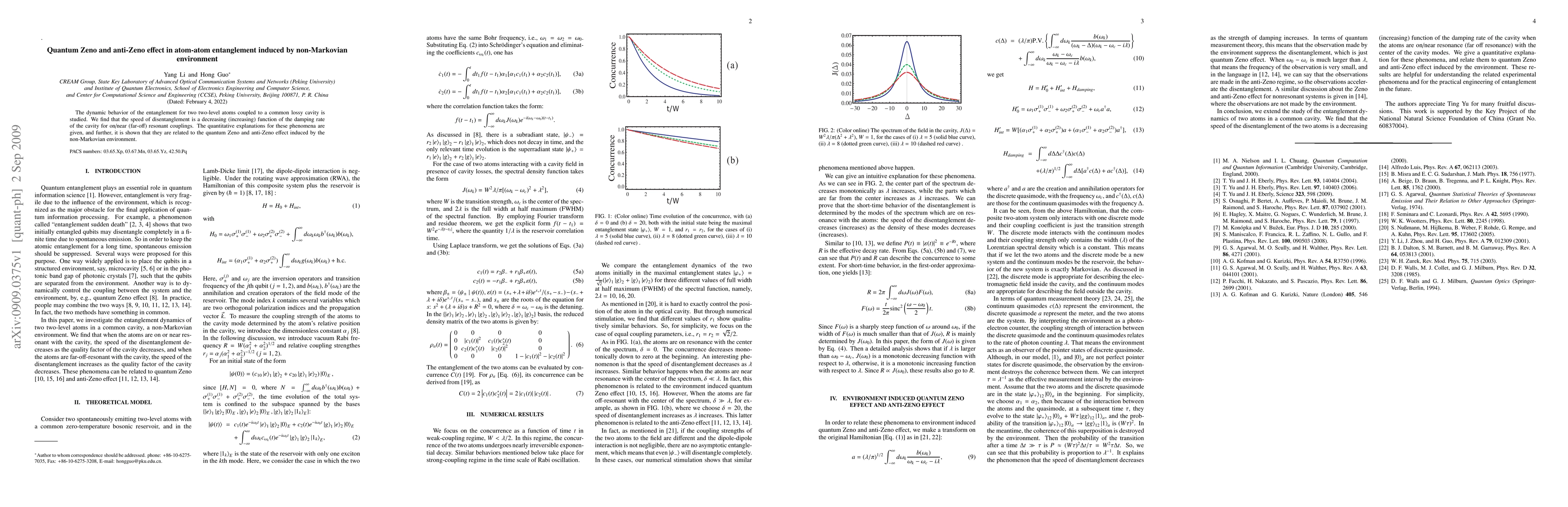 This paper investigates the dynamics of entanglement between two atoms in a lossy cavity, revealing that the rate of disentanglement varies with cavity damping, exhibiting quantum Zeno and anti-Zeno effects depending on the coupling resonance, influenced by the non-Markovian environment.