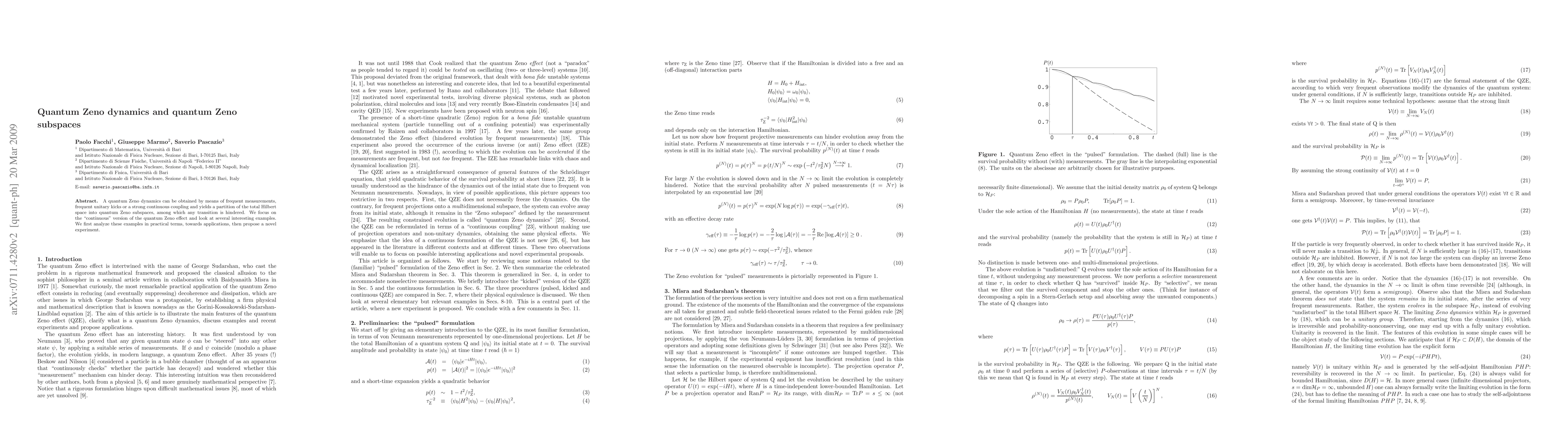 This paper explores the quantum Zeno dynamics achieved through continuous strong coupling, partitioning the Hilbert space into subspaces where transitions are suppressed. It examines practical applications and proposes a new experimental setup to observe these effects.