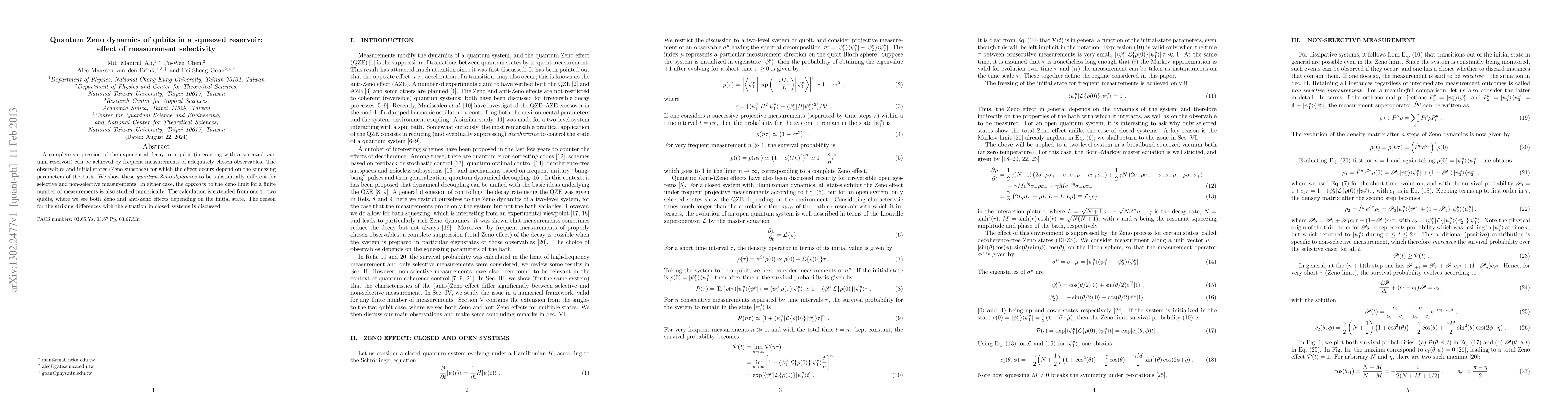 This paper investigates how frequent measurements of specific observables can completely suppress the decay of qubits in a squeezed vacuum reservoir, demonstrating quantum Zeno dynamics. The study highlights the differences between selective and non-selective measurements and extends the analysis to two-qubit systems, revealing both Zeno and anti-Zeno effects based on initial states.