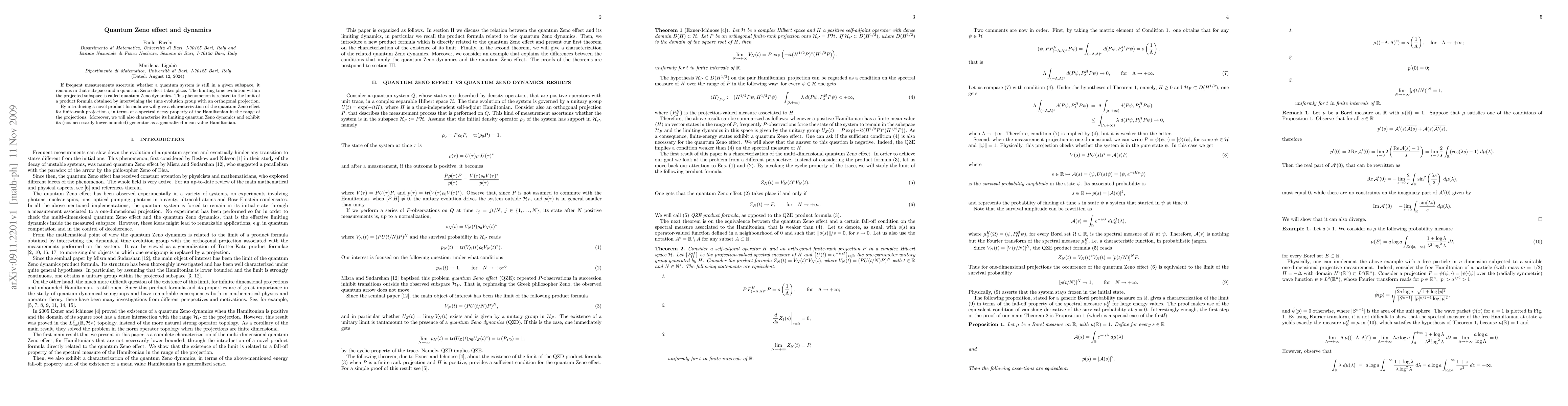 This paper explores the Quantum Zeno effect, demonstrating how frequent measurements can keep a quantum system within a specific subspace, leading to quantum Zeno dynamics. It introduces a new product formula to characterize this effect and its dynamics, linking it to the spectral decay of the Hamiltonian and presenting a generalized mean value Hamiltonian as its generator.