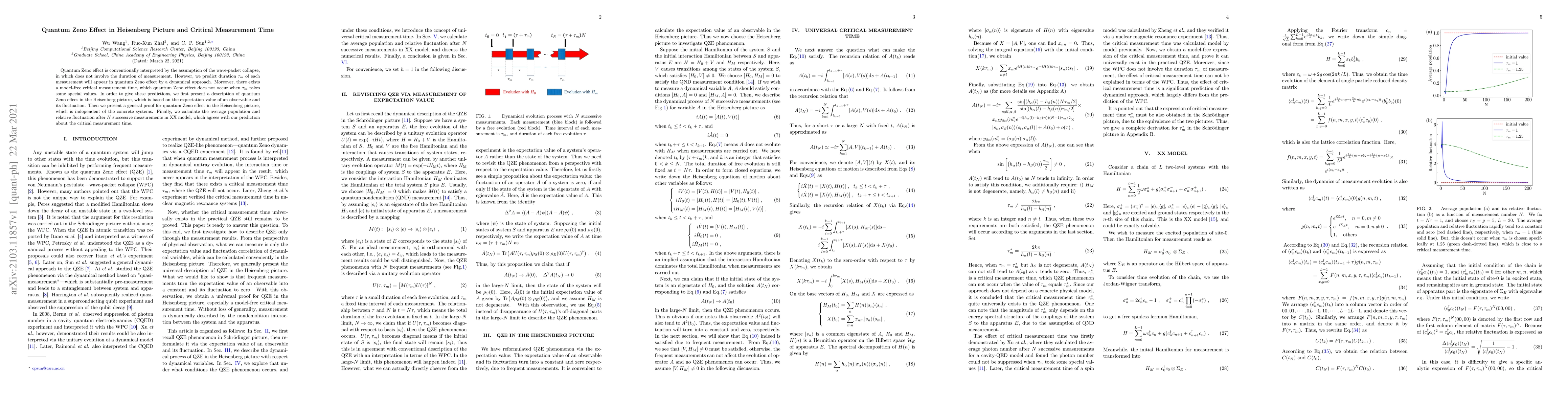 This paper explores the Quantum Zeno effect in the Heisenberg picture, demonstrating that measurement duration $\tau_m$ influences the effect and identifying a model-free critical measurement time where the effect ceases. The study provides a general proof for the effect and validates the predictions using the XX model.