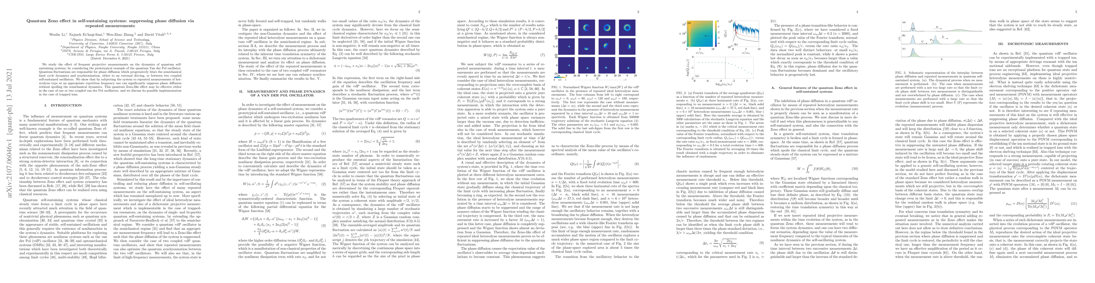 The paper presents a novel approach to suppress phase diffusion in quantum self-sustaining systems through repeated heterodyne measurements, demonstrating a quantum Zeno-like effect.