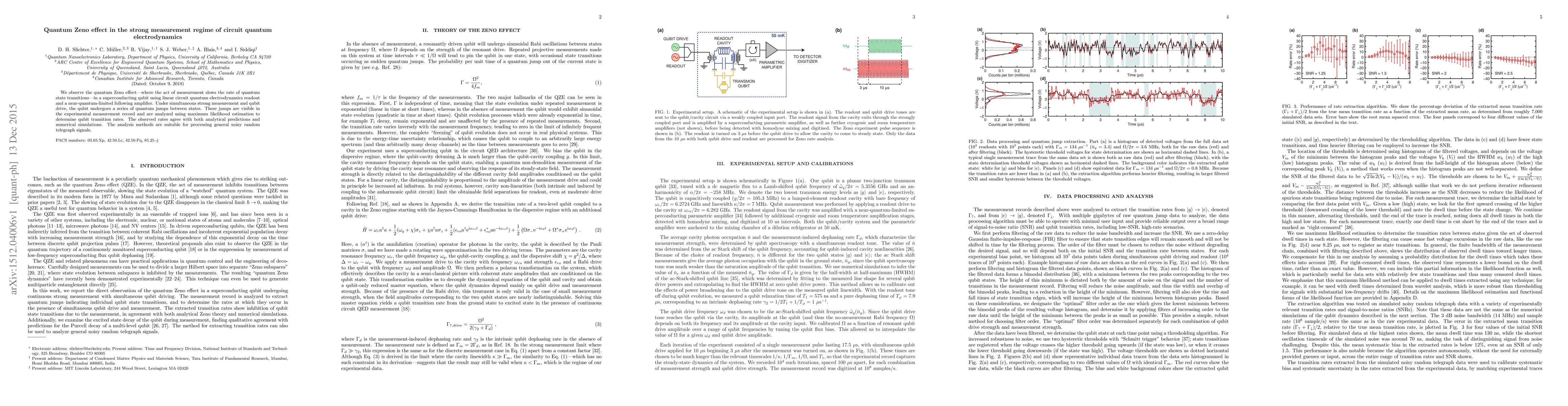 This paper observes the quantum Zeno effect in a superconducting qubit using circuit quantum electrodynamics, demonstrating that frequent measurements slow down quantum state transitions. The study employs maximum likelihood estimation to analyze qubit transitions and validates the results with analytical predictions and simulations.
