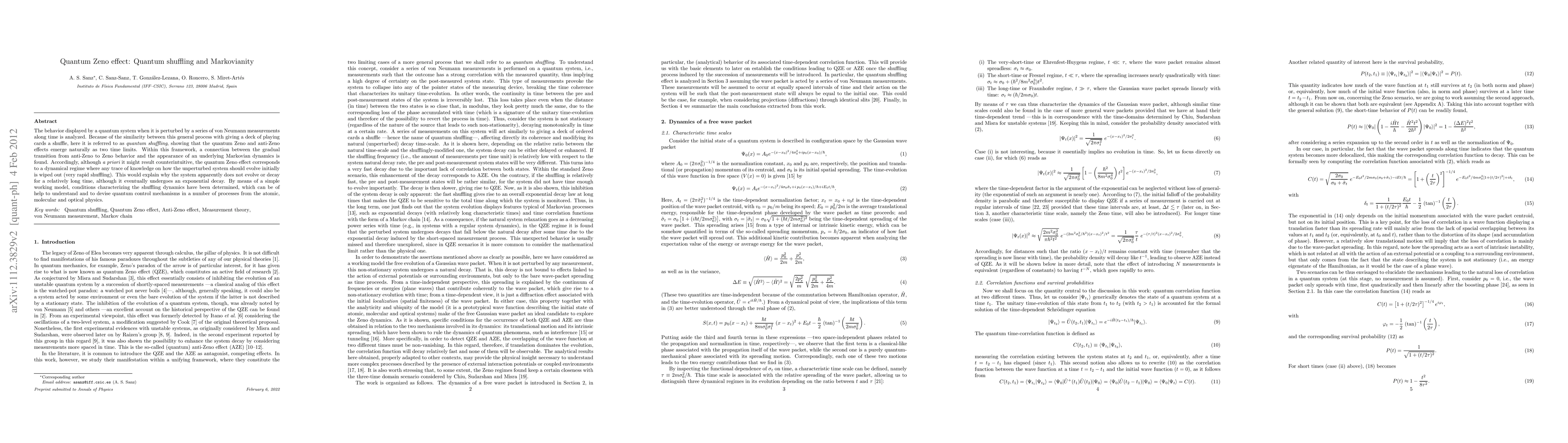 This paper explores the quantum Zeno effect through the analogy of quantum shuffling, demonstrating how frequent measurements can halt or accelerate quantum evolution. It reveals a transition from anti-Zeno to Zeno behavior linked to the emergence of Markovian dynamics, providing insights into quantum control mechanisms.